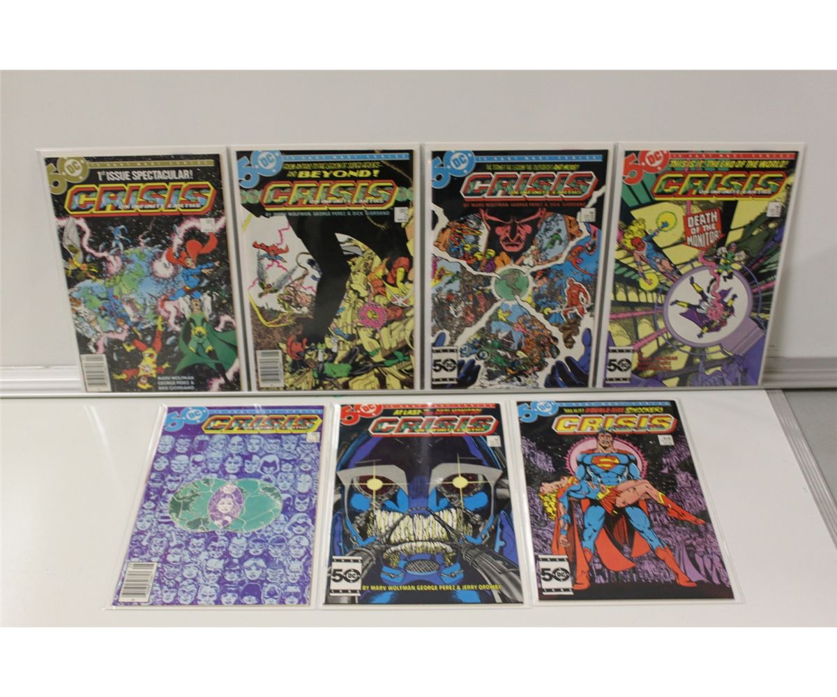 CRISIS ON INFINITE EARTHS #1-12 COMPLETE. THE SERIES WITH THE DEATH OF SUPERGIRL & FLASH, AMONGST MANY OTHER KEYS. HIGH GRADE AVERAGE. INCLUDES THE CRISIS INDEX. 13 BOOKS TOTAL.