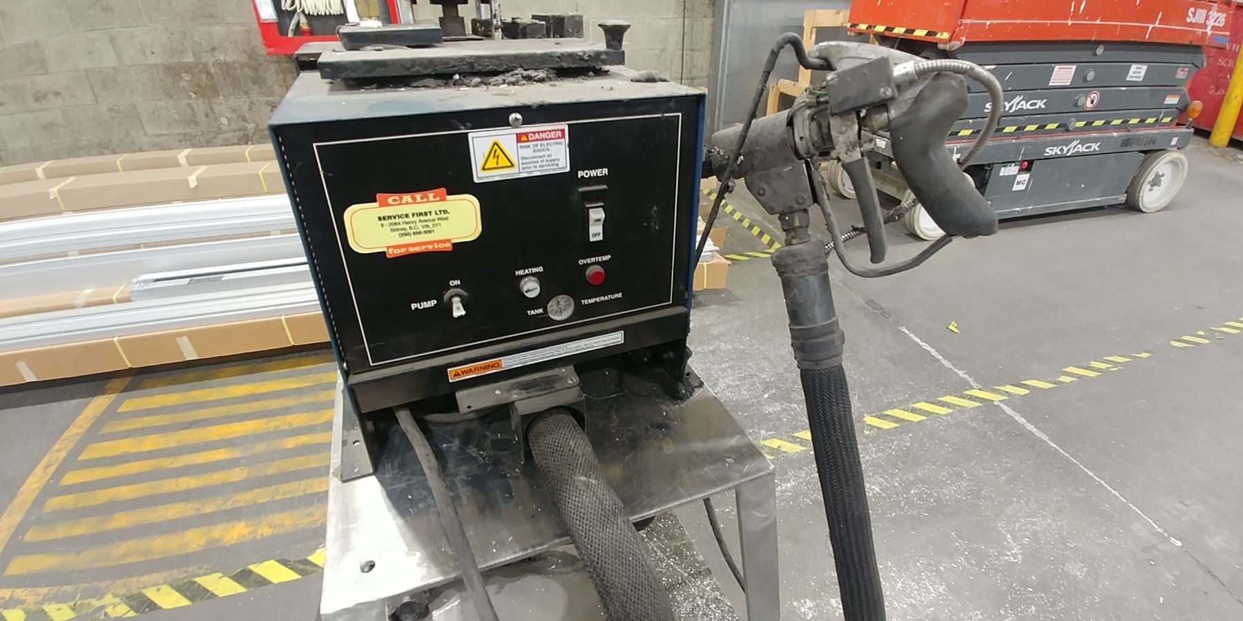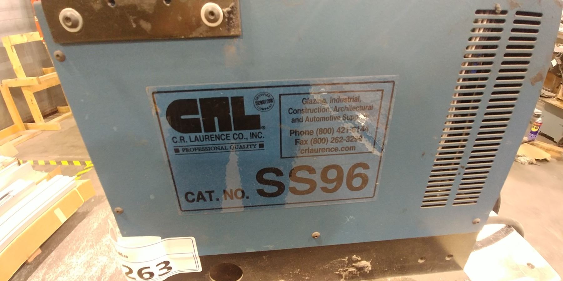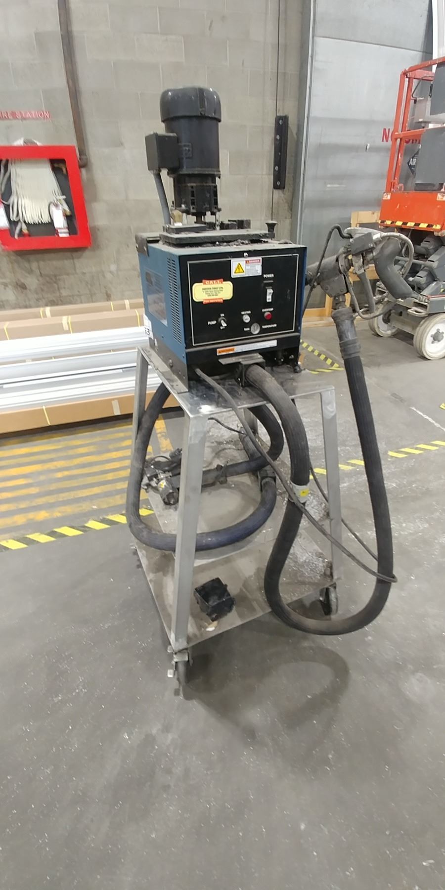 CRL SS96 HOT MELT BUTYL GUNNING SYSTEM USED TO SEAL DOUBLE GLASS UNITS WITH SPARE GUN. RETAILS AT $19,999 USD. ON ALUMINUM CART