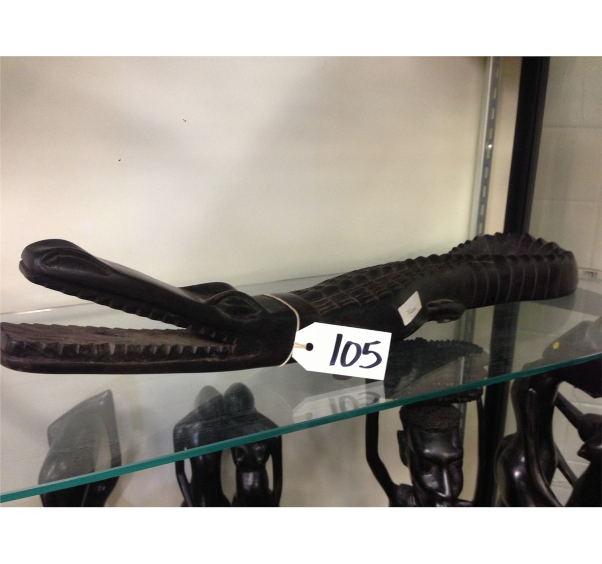 CROCCODILE, HAND CARVED EBONY, 5" TALL 24" LONG