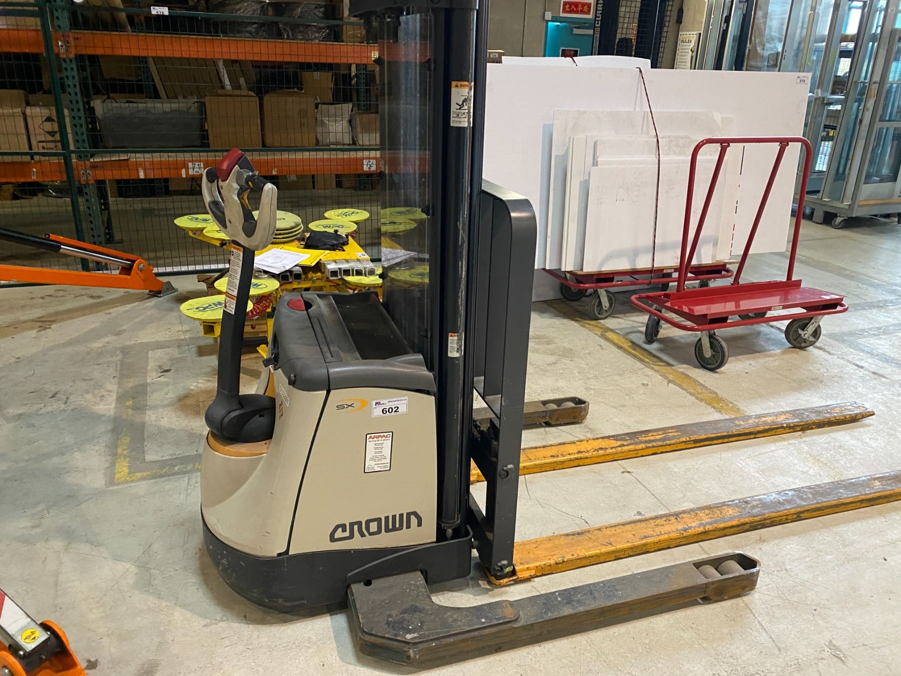 CROWN SX3000-40 3,000 LB CAPACITY ELECTRIC PALLET MOVER WITH 14' LIFT, BUILT IN CHARGER AND 440HRS