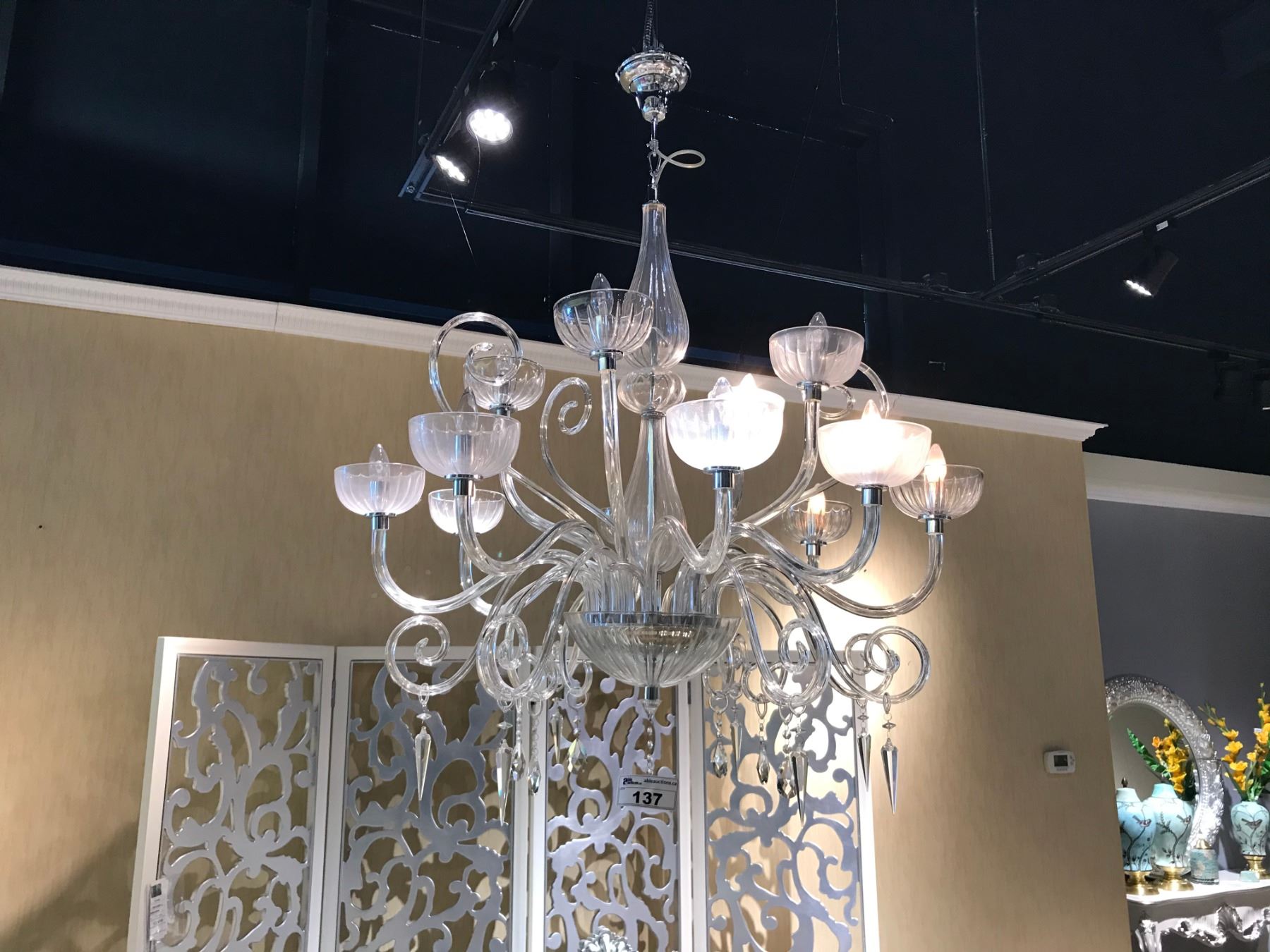 CRYSTAL & GLASS 12 HEAD CHANDELIER