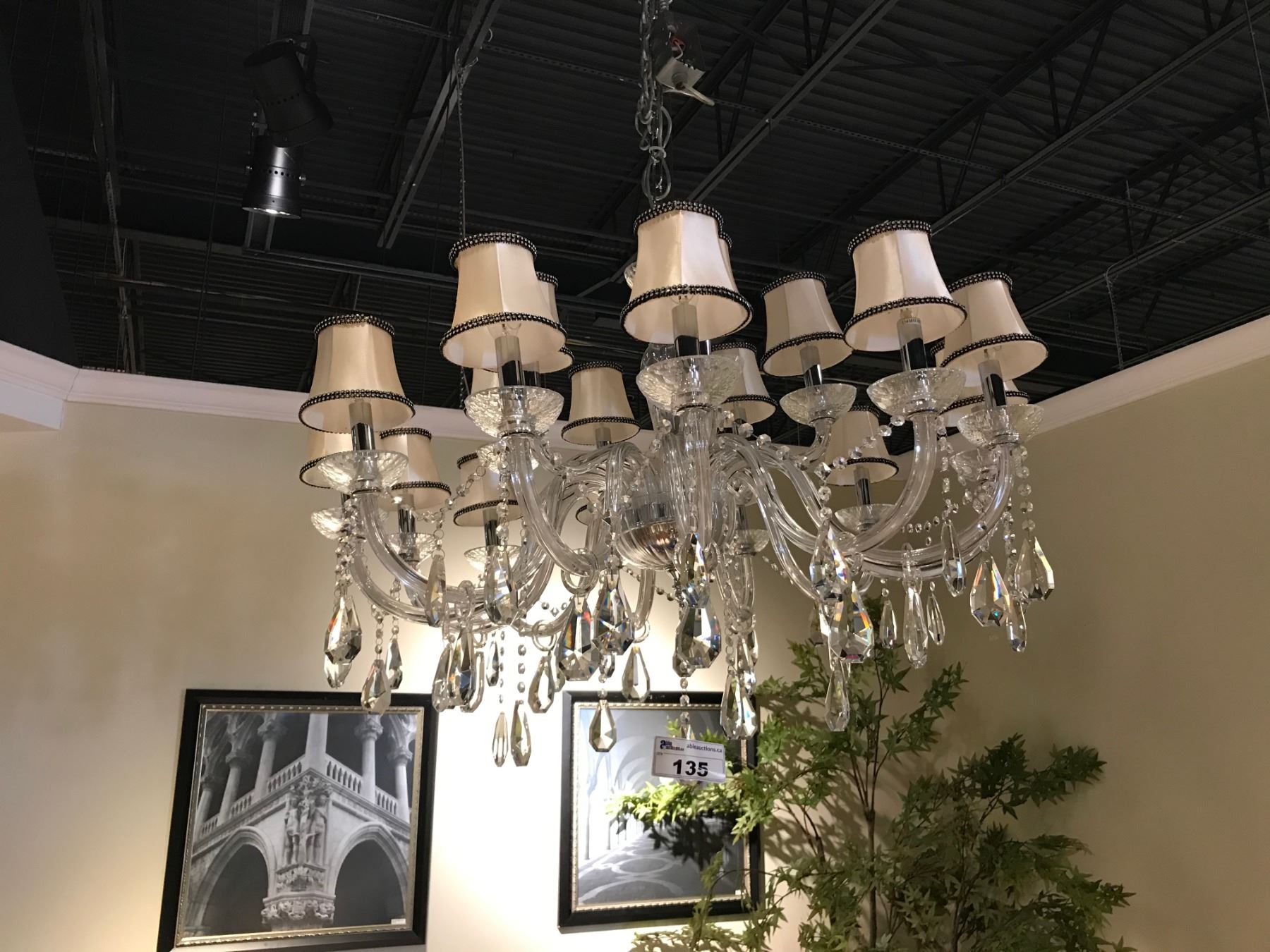 CRYSTAL & GLASS 18 HEAD SHADED CHANDELIER