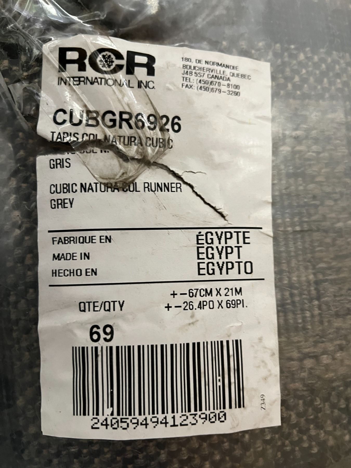 CUBIC NATURA COL RUNNER "GREY" 26.4" X 69' - MADE IN EGYPT