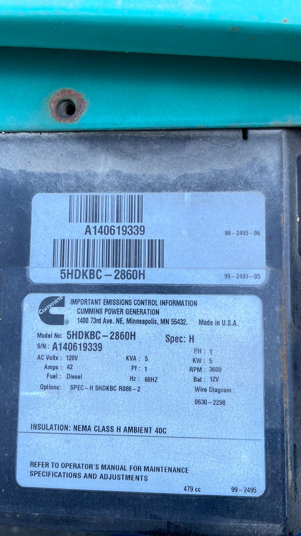 CUMMINS 5HDKBC-2860H 120 SINGLE PHASE MOBILE DIESEL GENERATOR