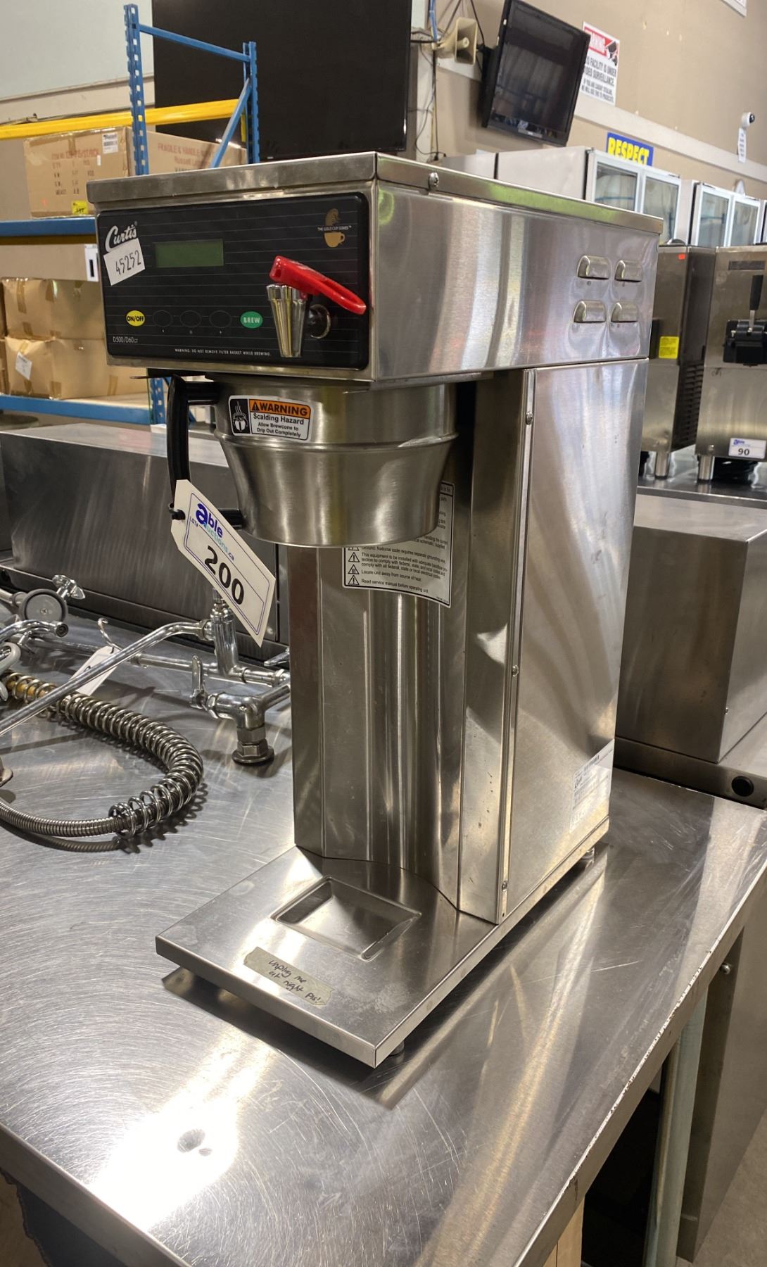 CURTIS D500/D60GT STAINLESS STEEL COMMERCIAL AIRPOT BREWER WITH HOT WATER DISPENSER ** MISSING CARAFE **