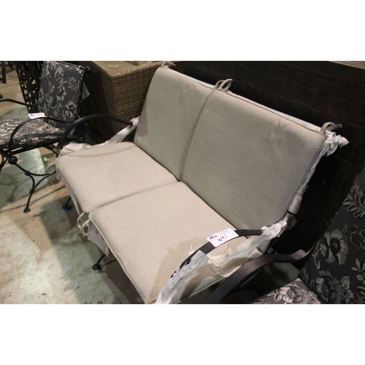 CURVED ARM BLACK METAL 2 SEAT BENCH WITH CUSHION