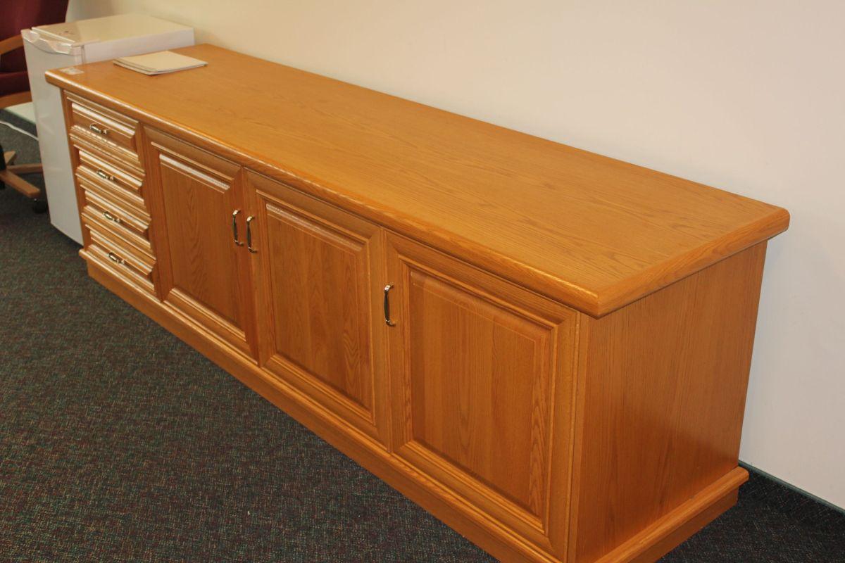 CUSTOM BUILT CARVED FRONT OAK CREDENZA