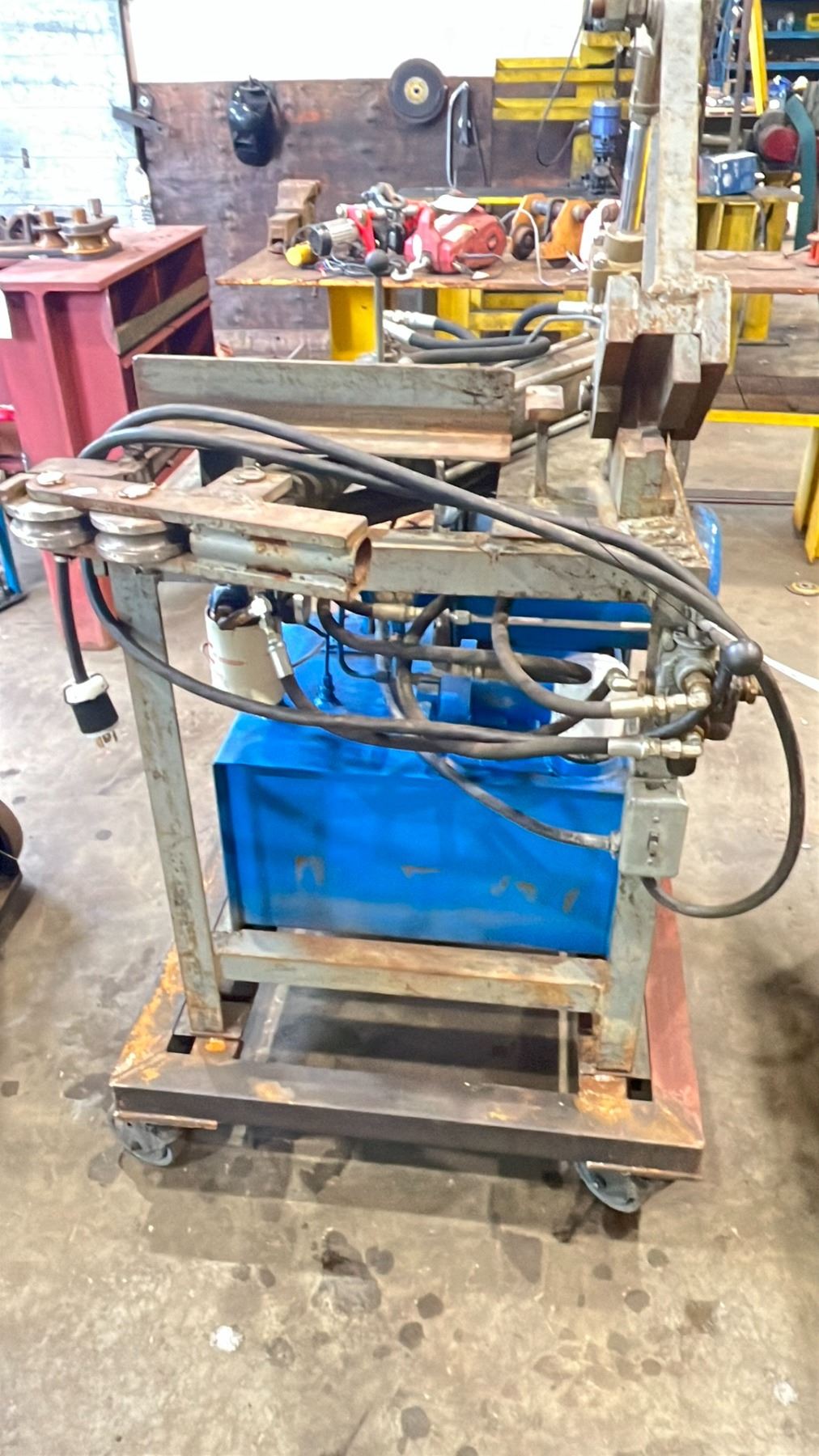 CUSTOM BUILT METAL BENDING MACHINE & SHEER WITH NACHI VARIABLE VANE PUMP ON MOBILE CART