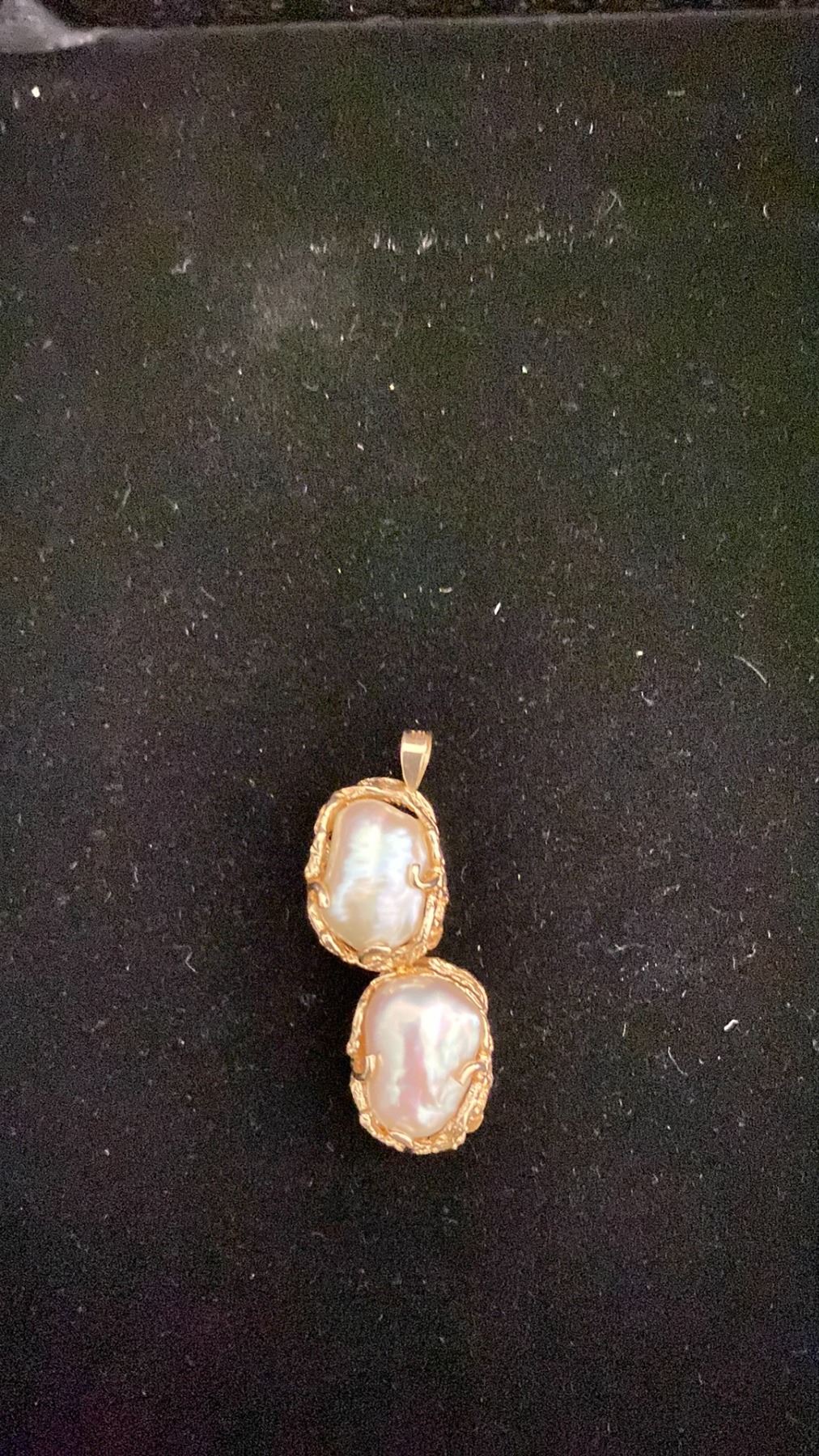 CUSTOM MADE 14K YELLOW GOLD & 10K YELLOW GOLD BIWA FRESH WATER CULTURED PEARL PENDANT, 5.60GR, INSURANCE REPLACEMENT APPRAISAL VALUE $1850