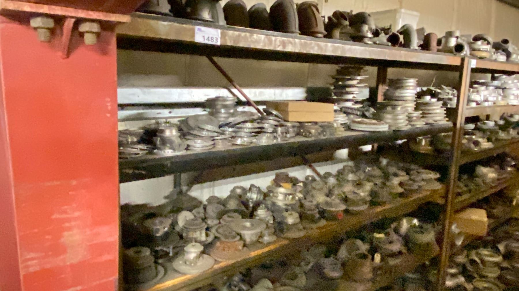 CUSTOM MADE HEAVY DUTY WELDED METAL SHELVING WITH PLYWOOD DECKS. 8'X26 X6'H. CONTENTS NOT