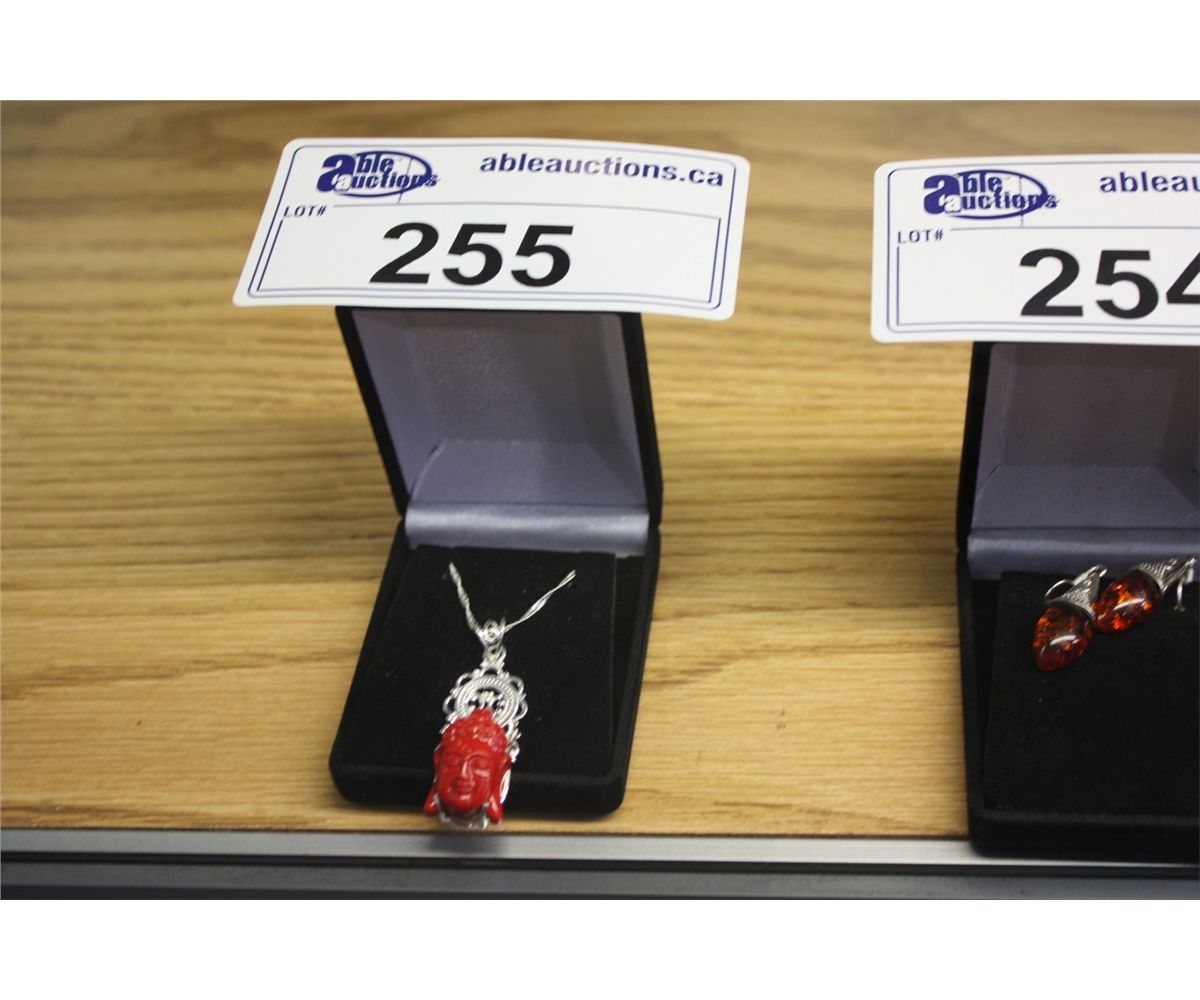 CUSTOM MADE STERLING SILVER AND RED ONYX BUDDHA PENDANT / NECKLACE SET