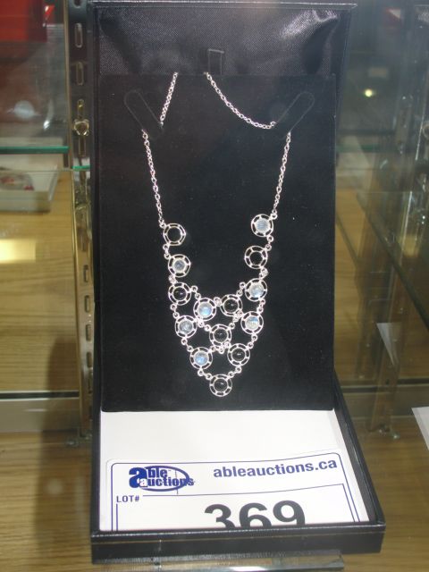 CUSTOM MADE STERLING SILVER MOONSTONE AND ONYX NECKLACE