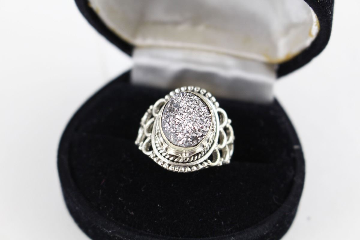 CUSTOM MADE STERLING SILVER RING SET WITH TITANIUM DRUZY