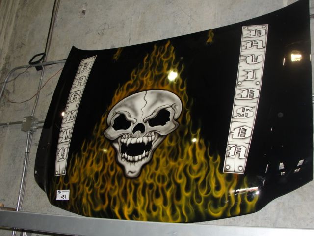 CUSTOM PAINTED HARLEY DAVIDSON SKULL AND FLAMES HOOD FOR F150 HARLEY EDITION PICK UP TRUCK