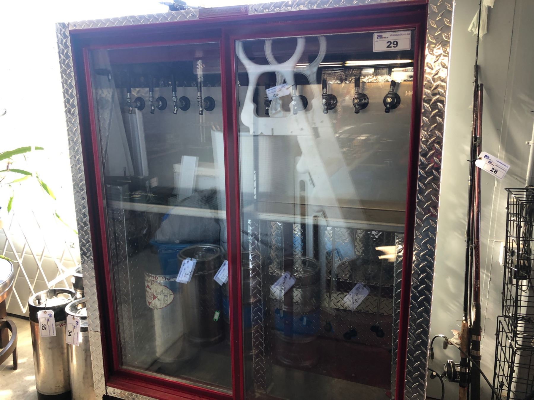 CUSTOM RED & CHECKER STAINLESS COLDMATIC 10 TAP BEER COOLER - 73 X 53 X 29 INCH
