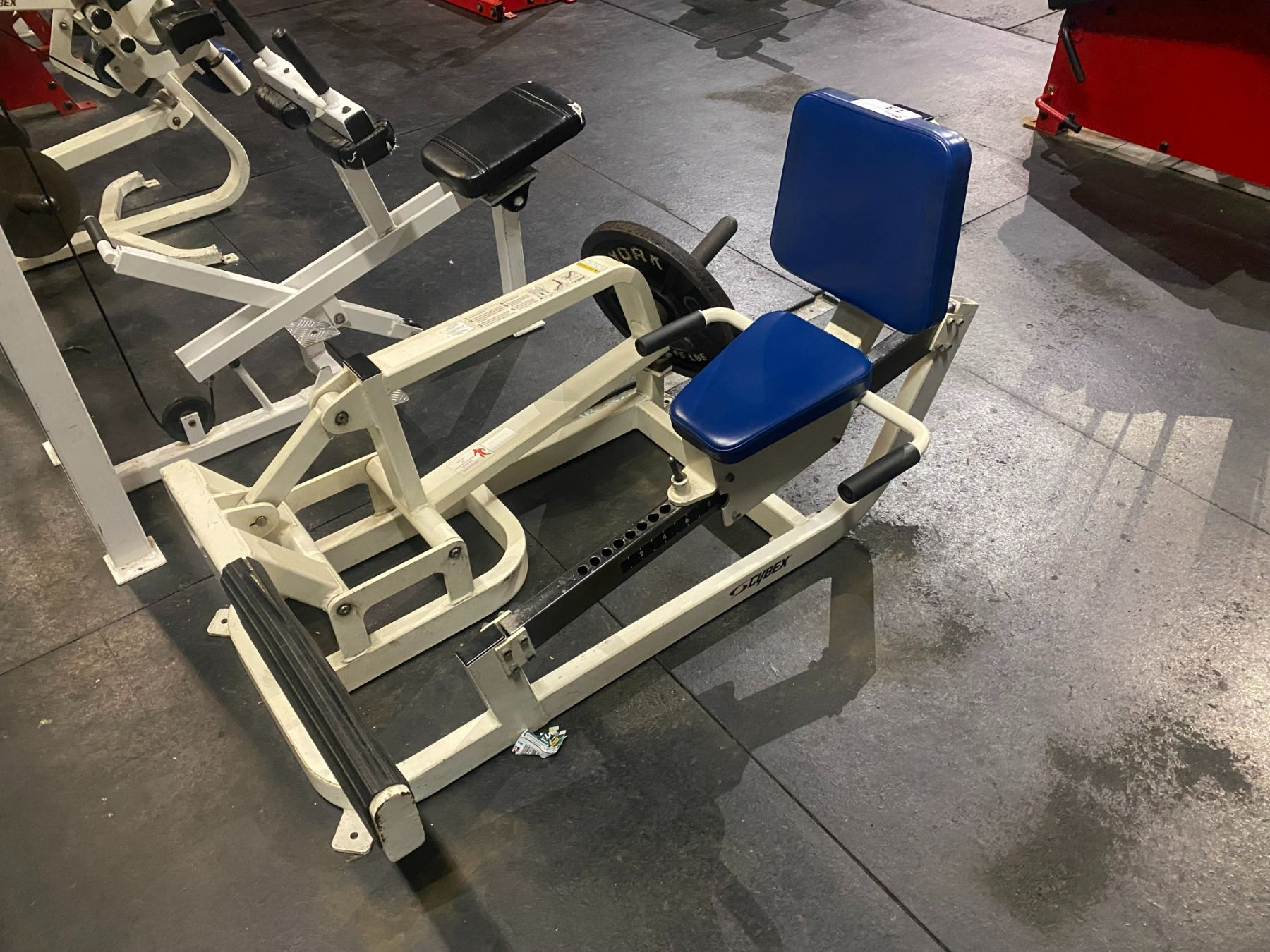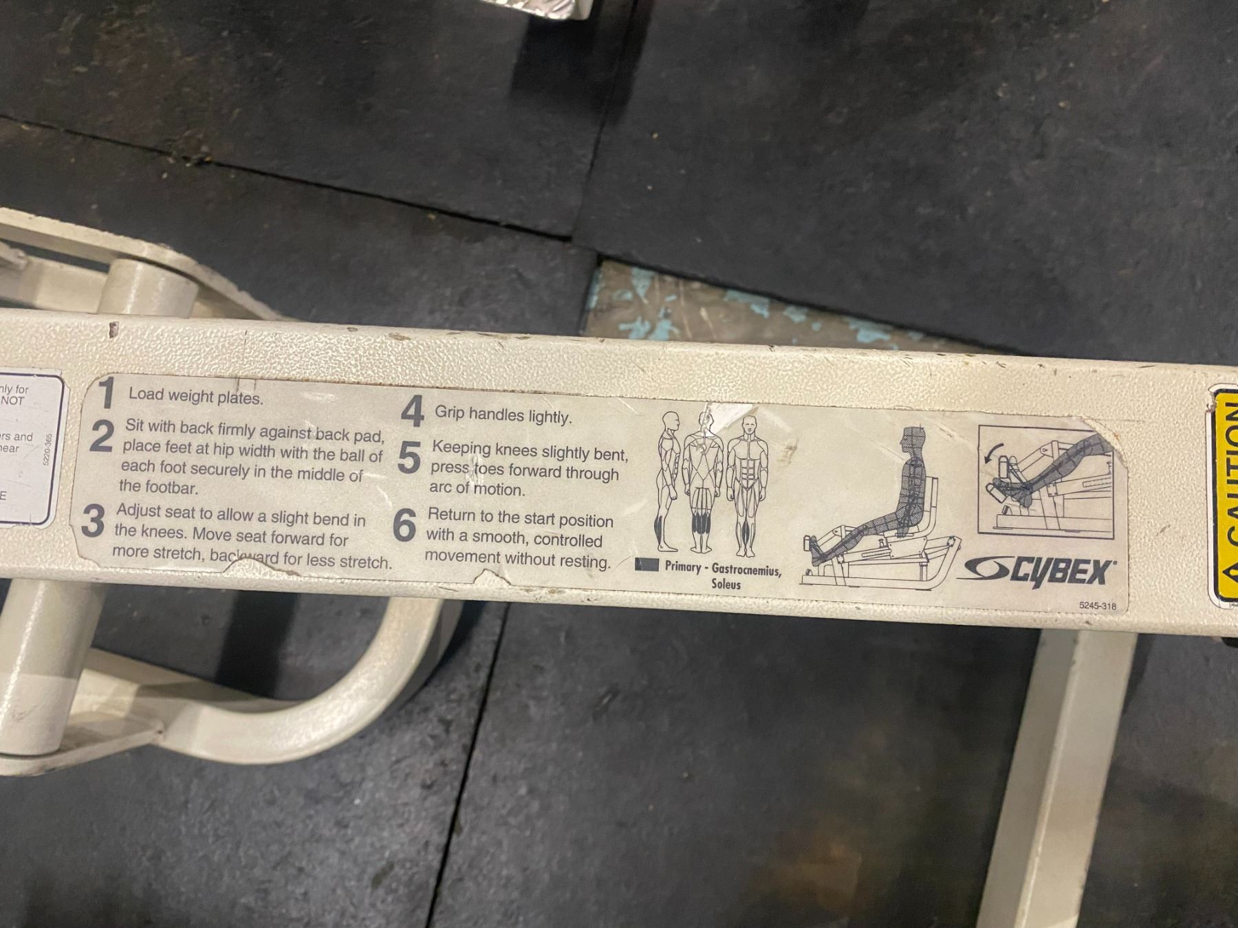 CYBEX COMMERCIAL FREE WEIGHT SITTING CALF RAISE MACHINE WITH 1 - 45LBS PLATE AND 1 - 25LBS PLATE