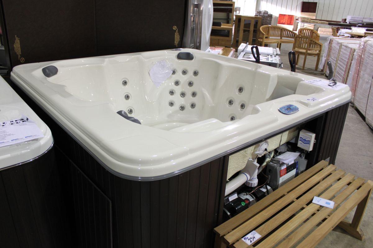 Calspa Hot Tub W/45 Ss Jets, 3 Pillows, 2 5Hp Pumps, Led Spa Light, Ozonator, Tapered Cover & 1 Year Warranty 7'X7'