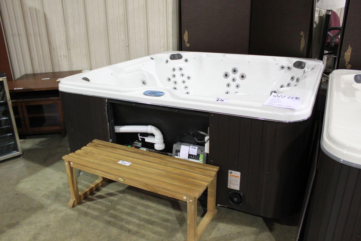 Calspa Luxury Hot Tub With 90 Ss Jets, 3 Pillows, Led Streamer Waterfall, Led 16 Perimeter Lighting, 3 5Hp Pumps, Ozonator, Deluxe Captains Chair,