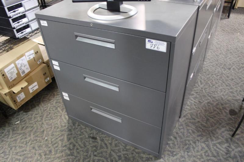 Charcoal Grey Haworth 3 Drw. Lateral File Cabinet