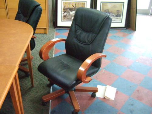 Cherry Framed Black Leather Boardroom Knee Tilter