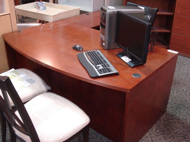 Cherry L-shape Bow Front Executive Desk
