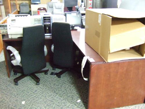 Cherry L-shape Double Pedestal Executive Desk