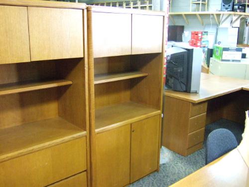 Cherry Oak Stationary Cabinet With Hutch Wall Unit