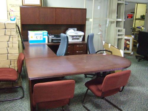 Cherry U-shap Bullet Top Single Pedestal Executive Suite With Hutch