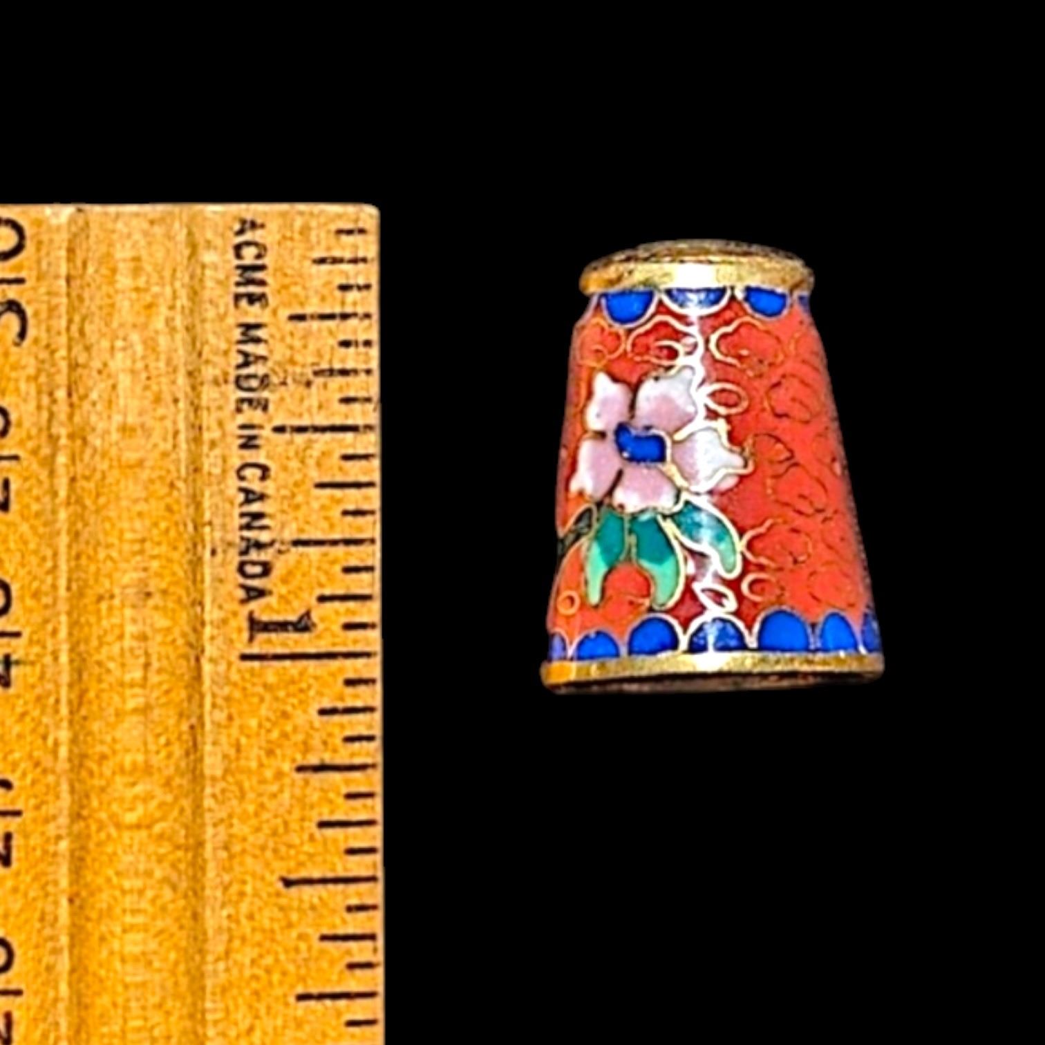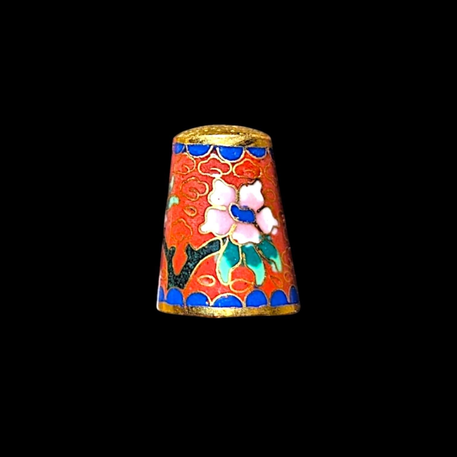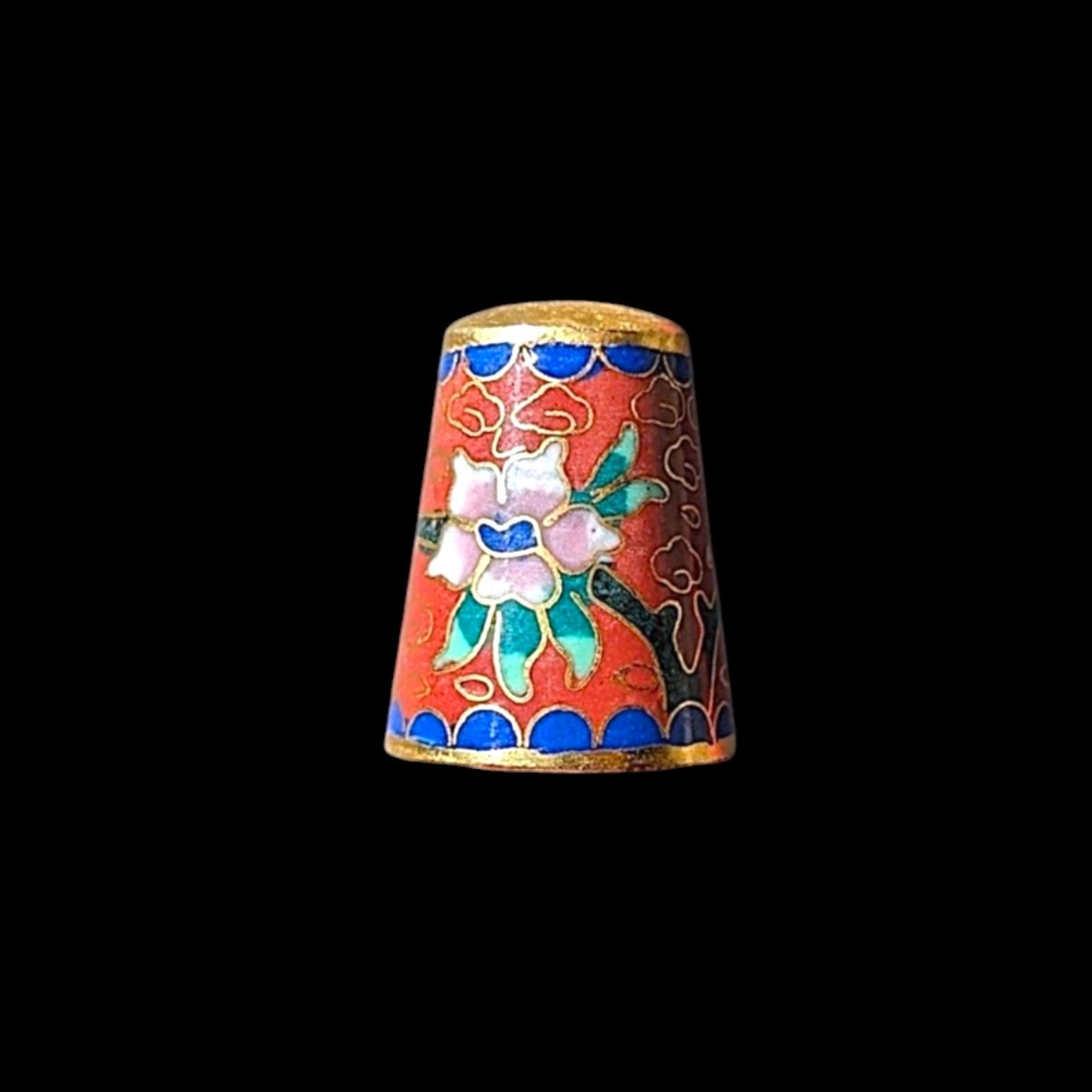 Cloisonne Red Blue Floral Enamel Sewing Thimble
