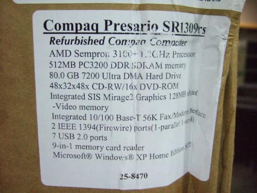 Compaq Presario Amd Sempron 3100+ Desktop 1.8ghz 512MB DDR Ram, 80GB HD, 7200rpm CDrw/ DVD Rom 48x32x48 Combo Drive 128mb Video Memory (shared) 7 Usb Ports, 9-in-