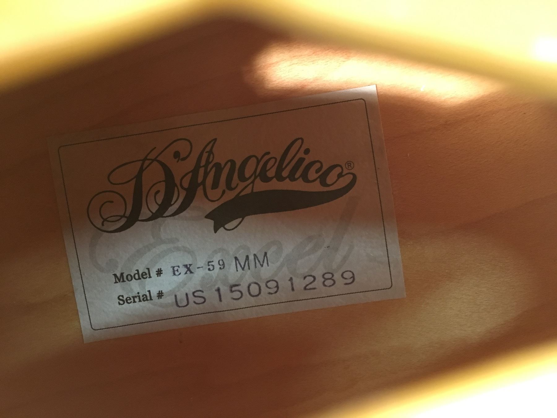 D'ANGLELICO MODEL EX-59MM ACOUSTIC/ELECTRIC GUITAR WITH TWO SINGLE COIL PICKUPS, FEATURING MARILYN MONROE IMAGERY, SERIAL NUMBER U15091289, COMES WITH HARD SHELL CASE
