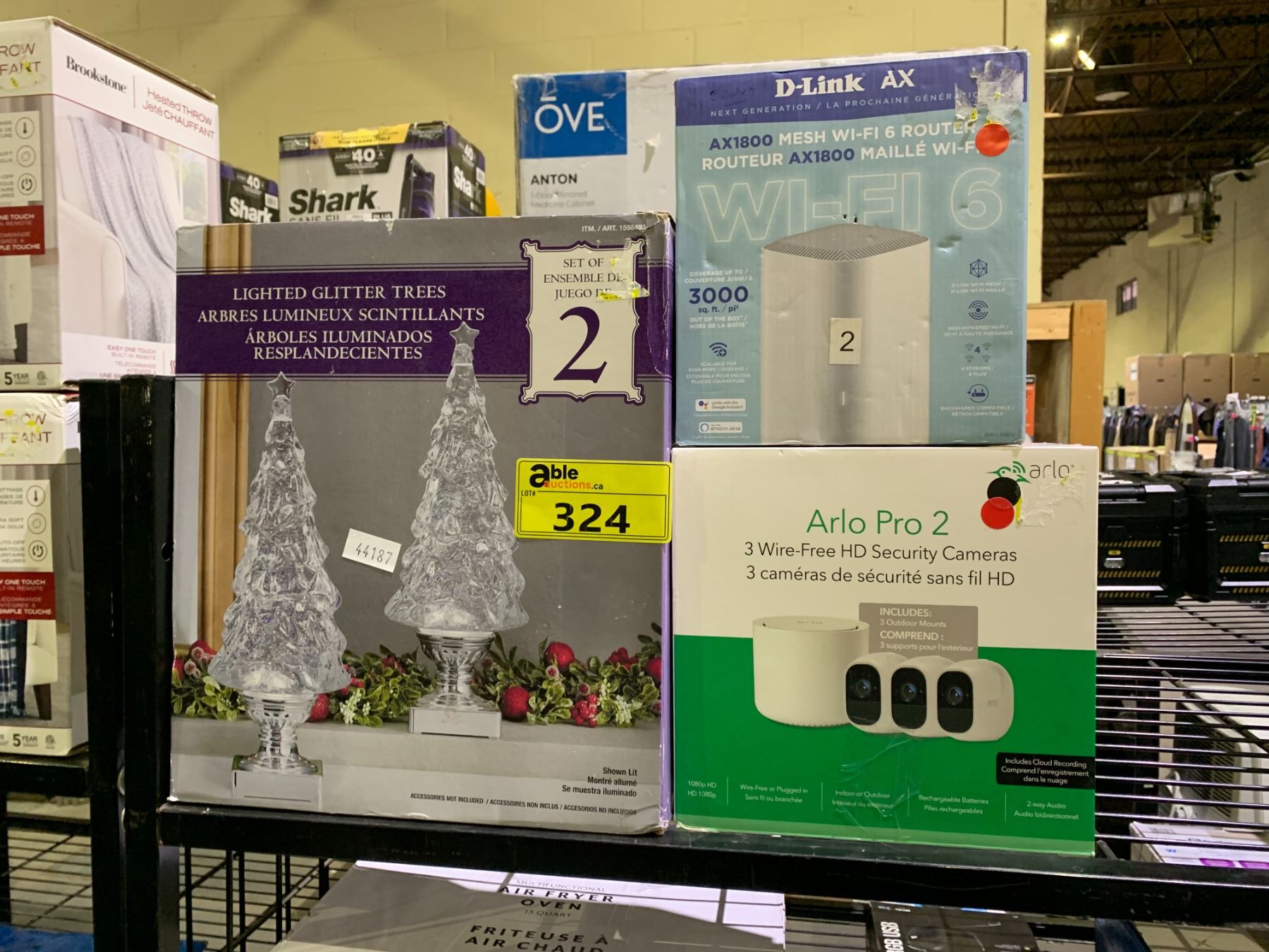 D LING ROUTER, ARLO PRO 3 WIRELESS SECURITY CAMERAS AND LIGHTED GLITTER TREES