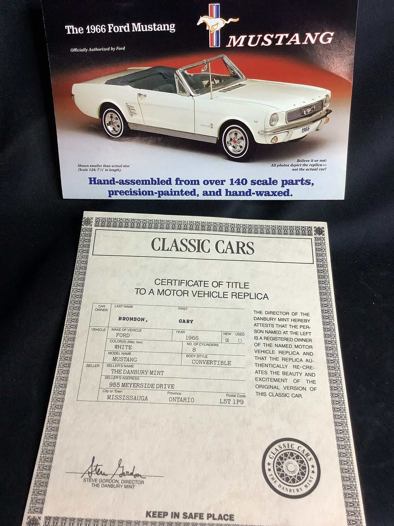 DANBURY MINT CLASSIC CARS 1966 FORD MUSTANG CONVERTIBLE 1:24 SCALE WITH COA