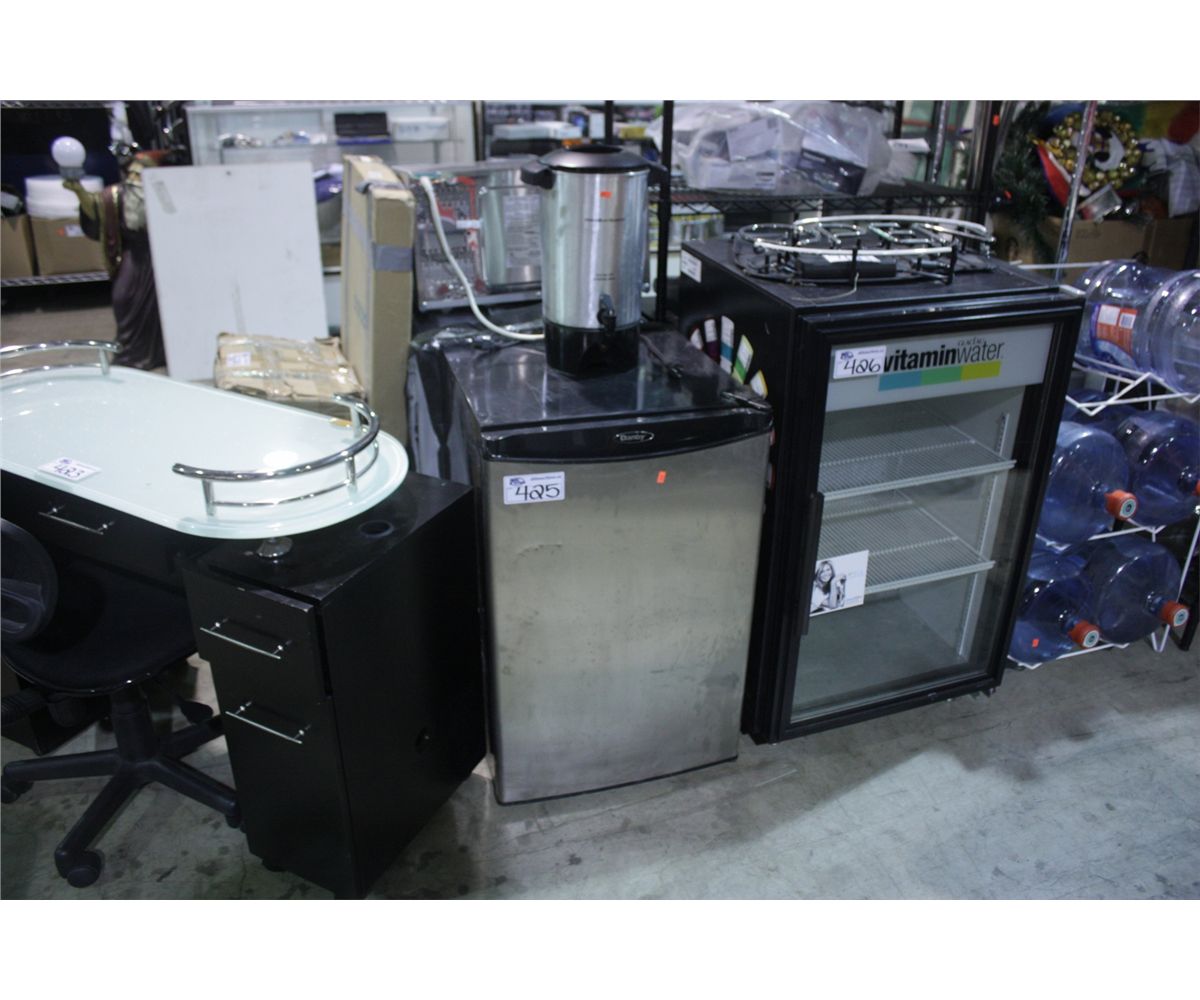DANBY STAINLESS STEEL BAR FRIG AND HAMILTON BEACH COFFEE MAKER