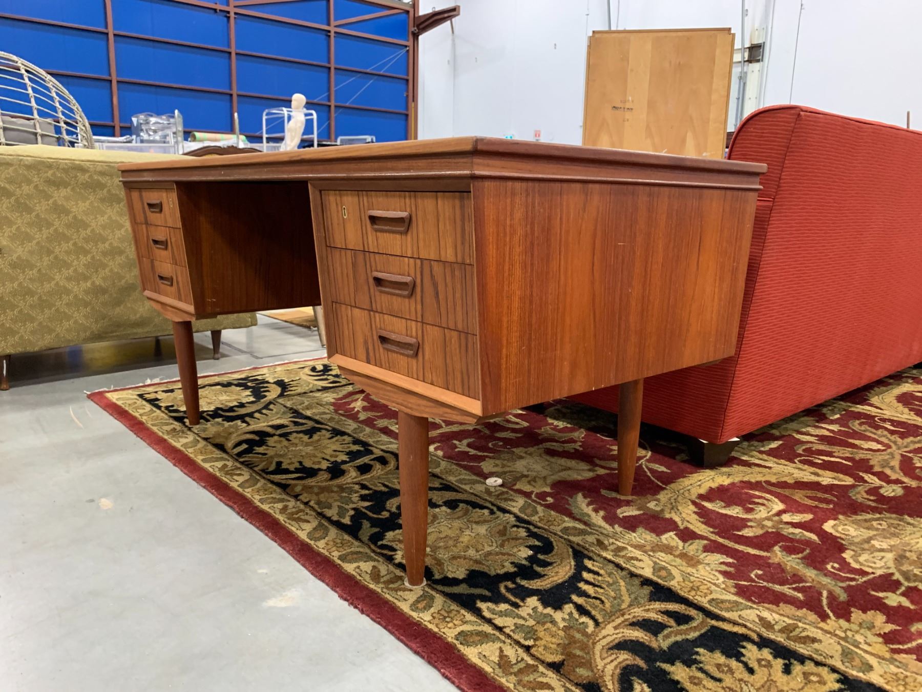 DANISH MODERN 6 DRAWER DESK L 59.5" W 30" H 28.5"