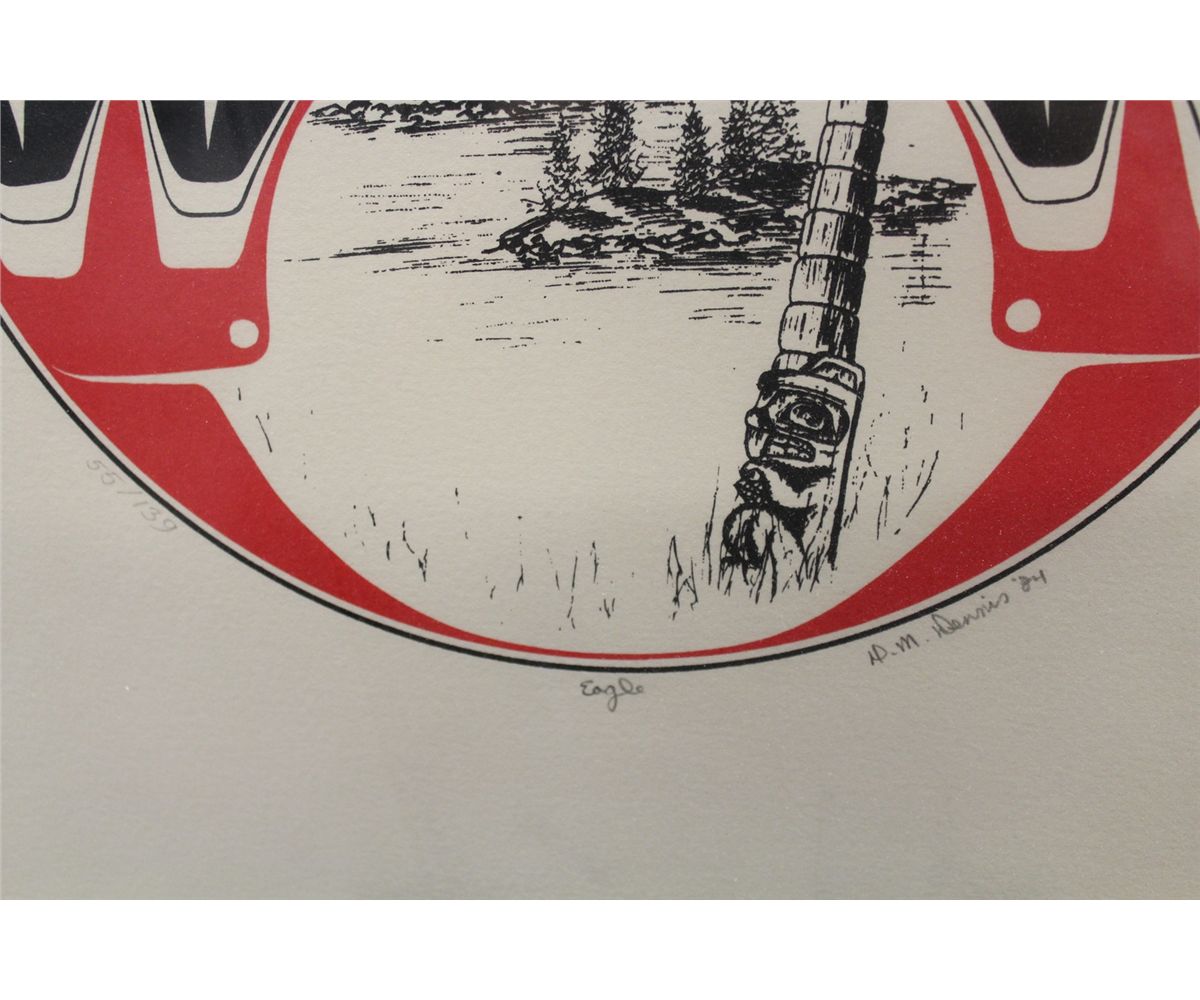 DANNY DENNIS (GITKSAN CANADIAN 1951- ) EAGLE PRINT, SIGNED AND DATED LOWER RIGHT, DM DENNIS '84" 55/139 13" X 11"