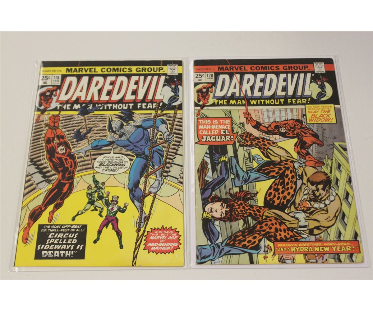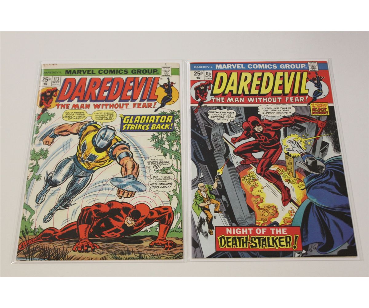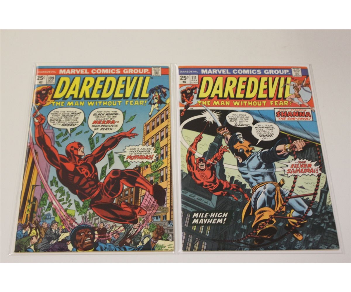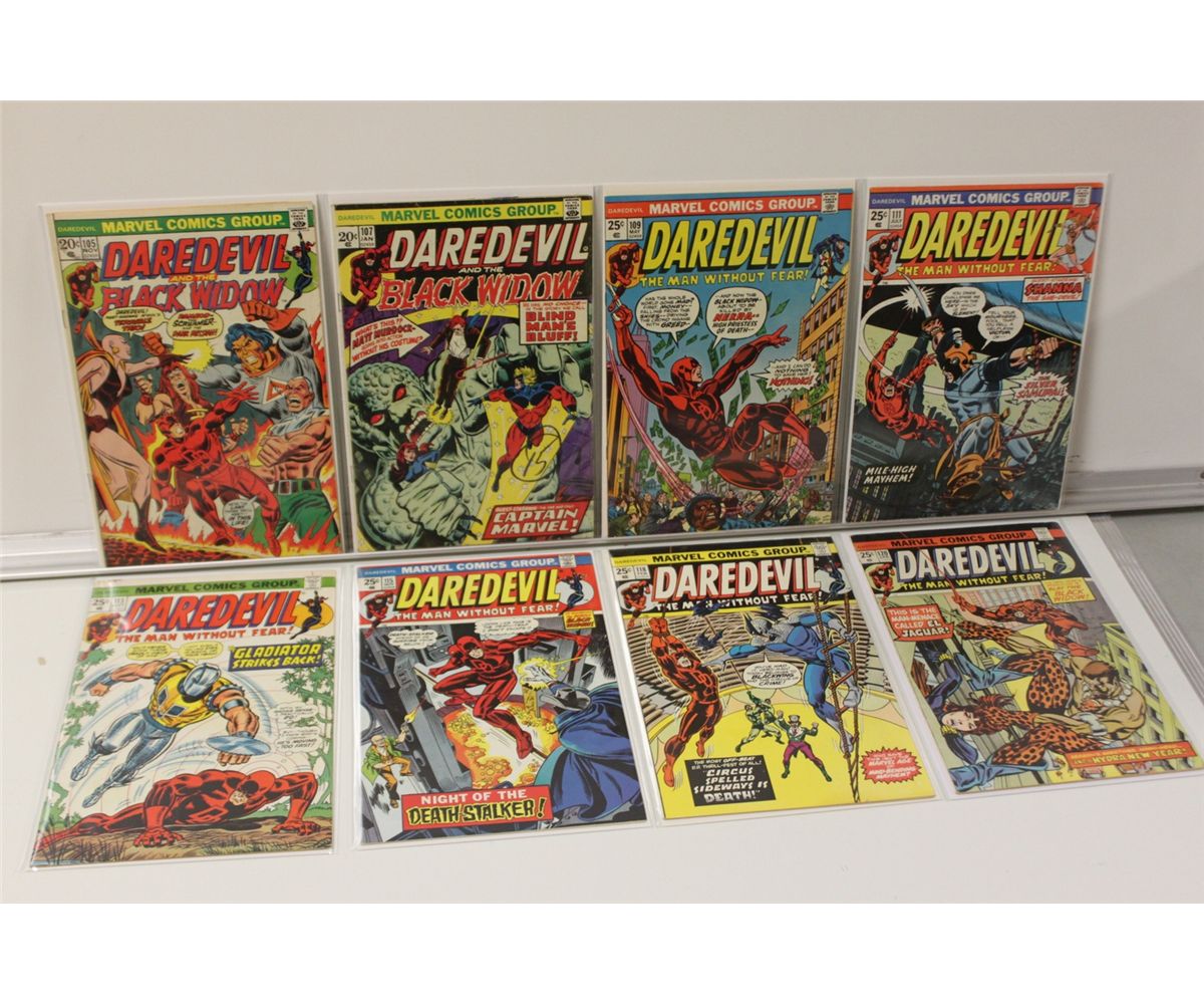 DAREDEVIL #105-120 (1973-75) RUN. 8 DIFFERENT ISSUES.  MIXED GRADE, LOW TO HIGH.  ALL COMPLETE STAMPS.