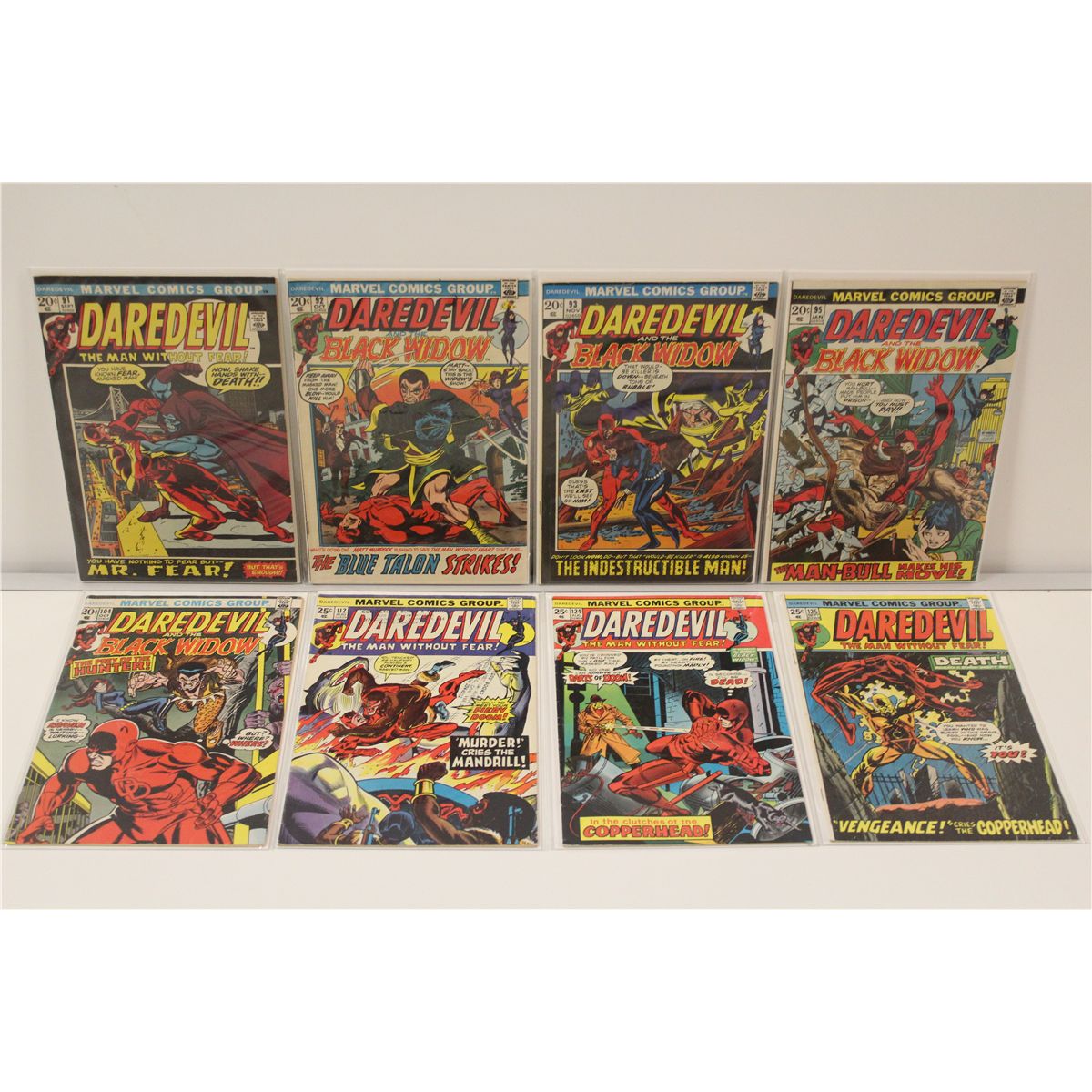 DAREDEVIL #23-207 (1966-84) INCLUDES MANY HIGH QUALITY 20 & 25 CENT COVER BRONZE ISSUES & A NEAR COMPLETE FRANK MILLER RUN! OVER 80 BOOKS TOTAL, NO DUPLICATES, MIXED GRADE RUN, MOST HIGHER MID GRADE AVERAGE, GLOSSY TIGHT & SUPPLE, TONS OF GUIDE VALUE HERE, CHOICE LOT!