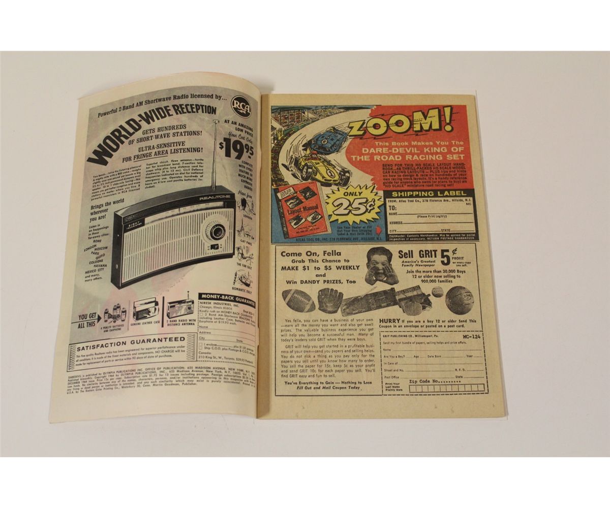 DAREDEVIL #5 (1964) WALLY WOOD ART BEGINS. PRINTING ERROR ISSUE (LAST HALF OF BOOK AT BEGINNING, 1ST HALF AT END) SHARP HIGHER MID GRADE, GLOSSY, TIGHT & SUPPLE. AN EXCELLENT EXAMPLE!