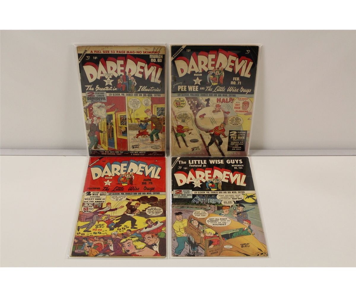 DAREDEVIL, LEV GLEASON PUBLICATIONS (1950) #60, 71, 75, 104. 4 SOLID LOW GRADE COPIES.