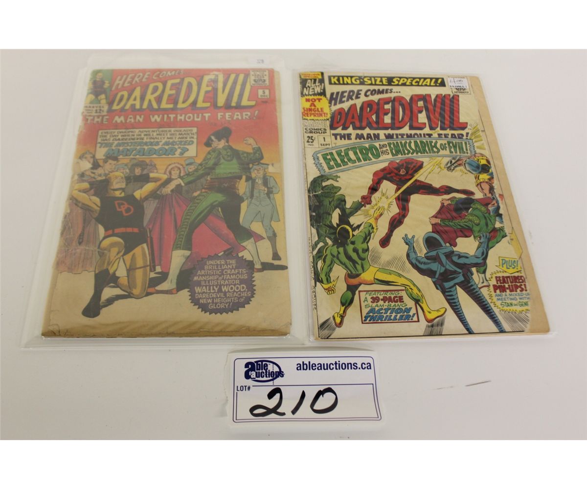 DAREDEVIL LOT - 2 EARLY COMICS - LOWER GRADE - #5 & KING SIZE ANNUAL #1 INTACT, FLAT, NICE LOOING COMICS.