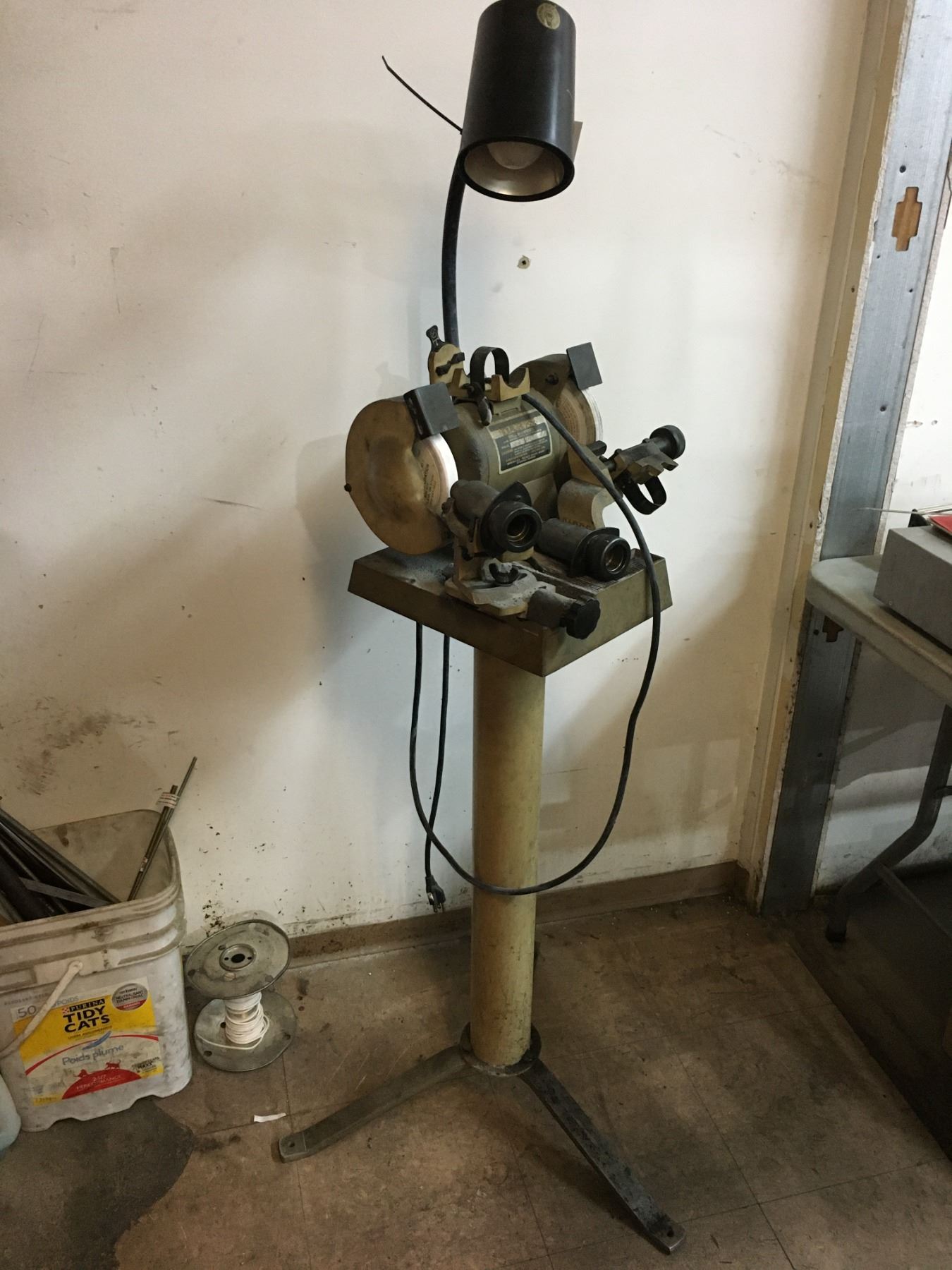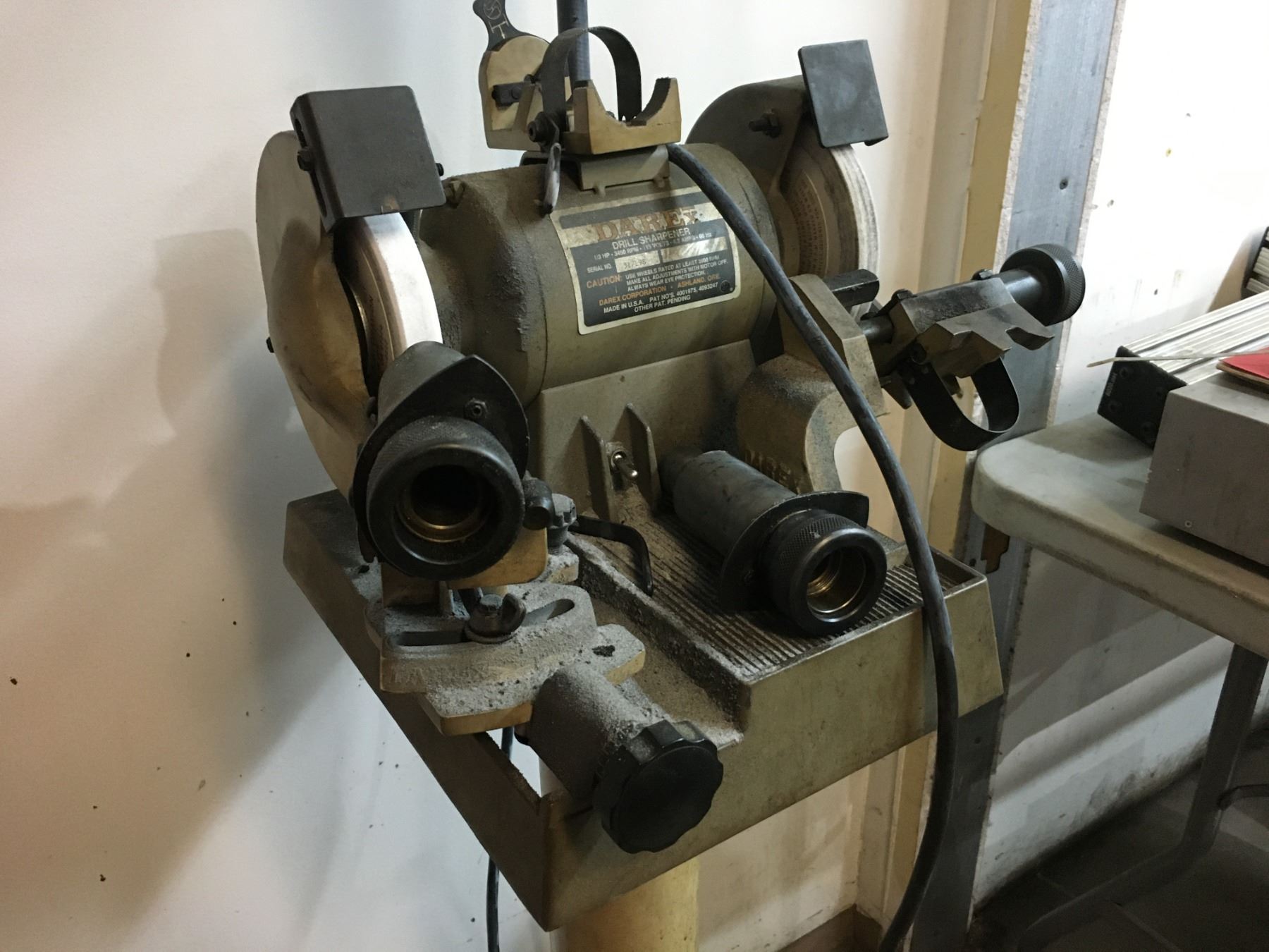 DAREX DRILL BIT SHARPENER ON PEDESTAL STAND W/LIGHT