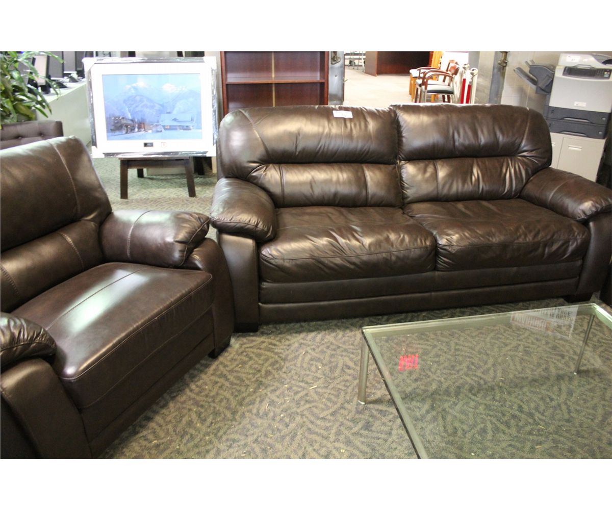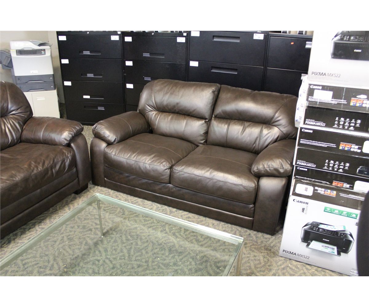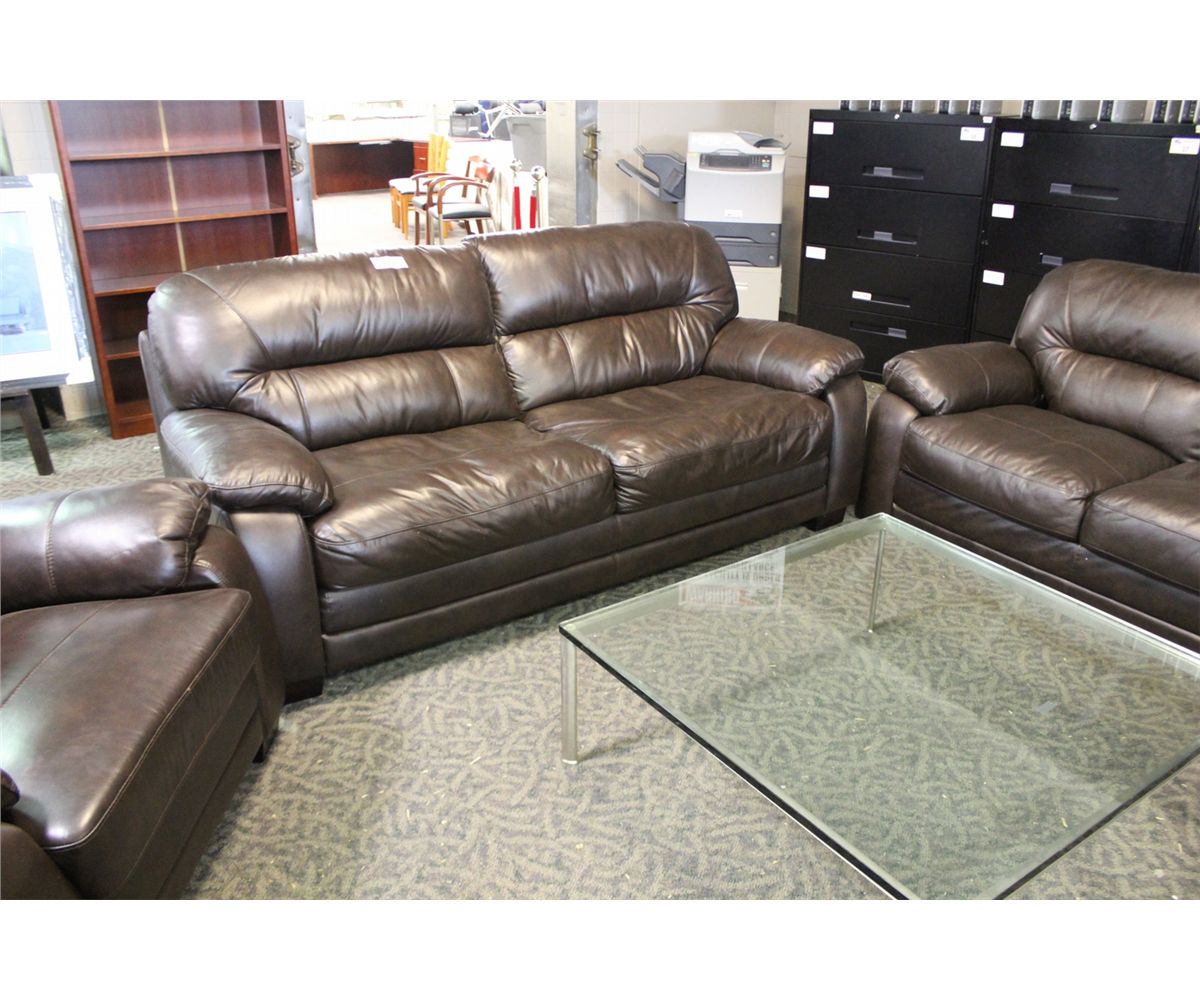 DARK BROWN FULL GRAIN LEATHER 3 PC. SOFA SET WITH SOFA, LOVESEAT AND CHAIR