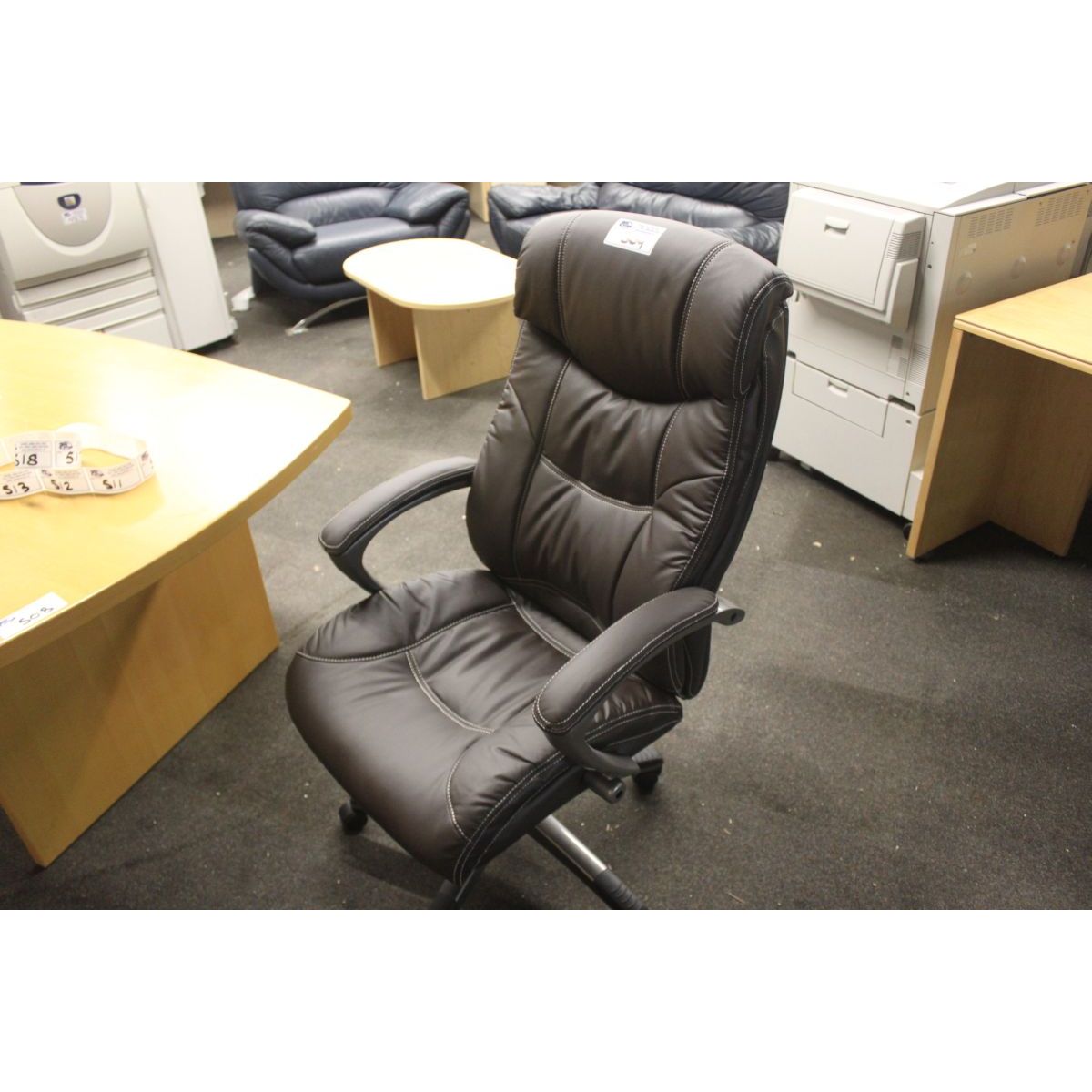 DARK BROWN LEATHER OVERSTUFFED EXECUTIVE HIBACK