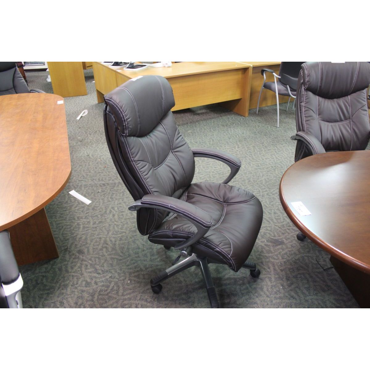 DARK BROWN LEATHER OVERSTUFFED HIBACK EXECUTIVE