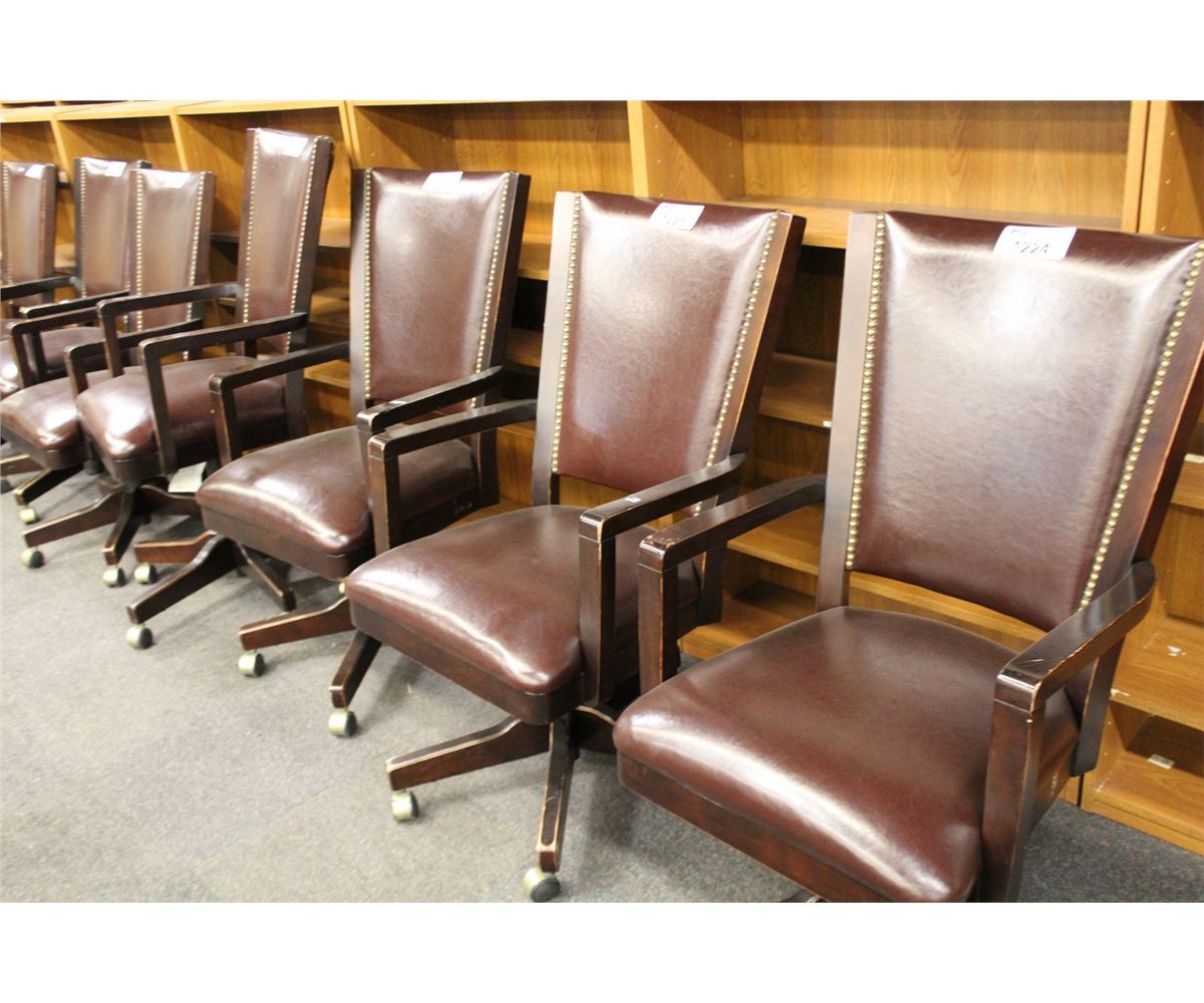 DARK BROWN LEATHER WOOD FRAMED TILTER CHAIR