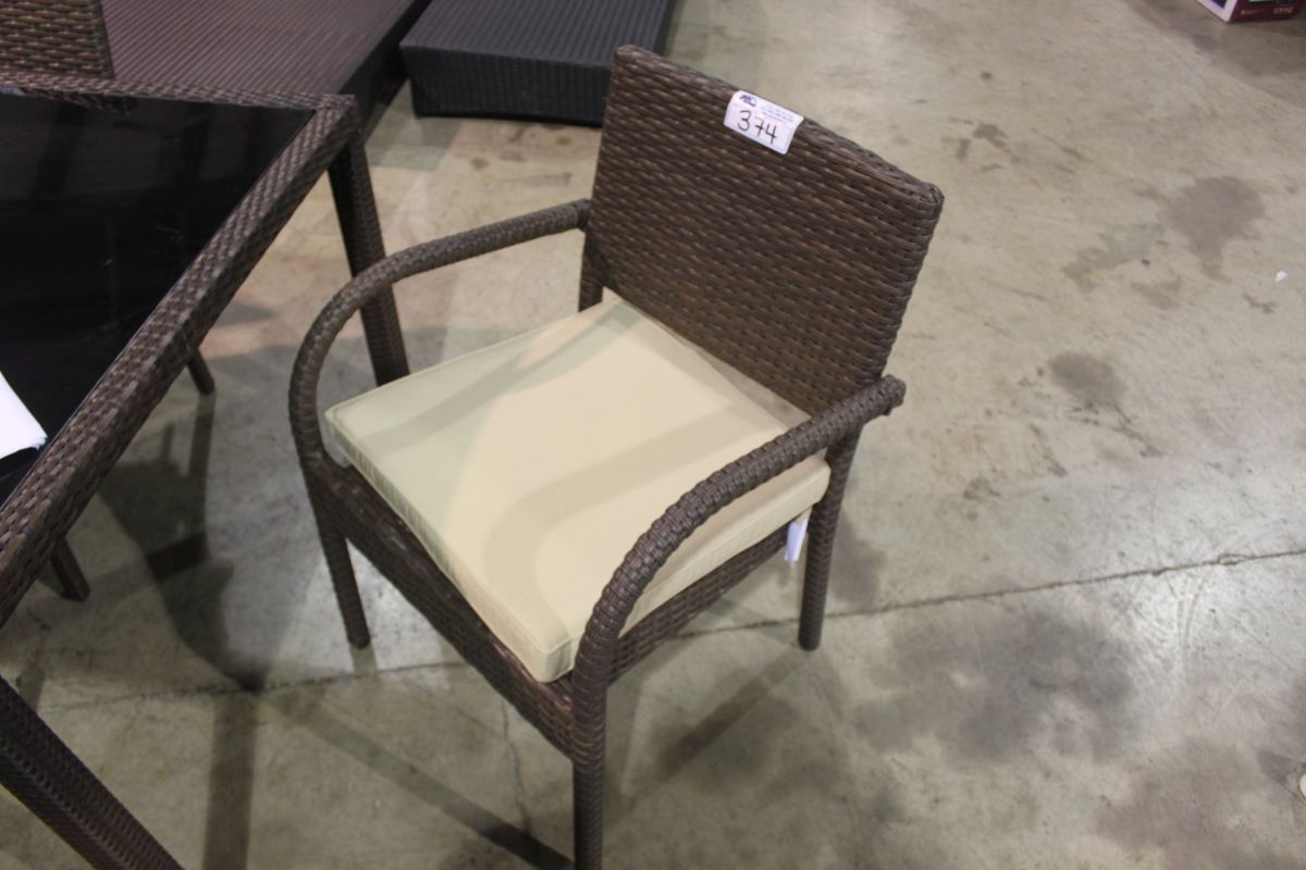 DARK BROWN RATTAN OUTDOOR DINING CHAIR WITH CUSHION