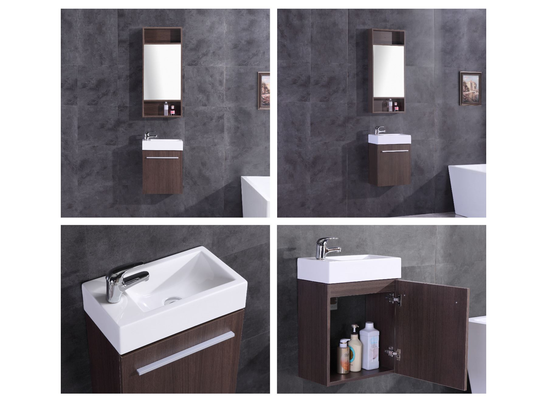 DARK BROWN WALL MOUNT VANITY - ACRYLIC SINK - 18"W X 10"D X 23.6"H