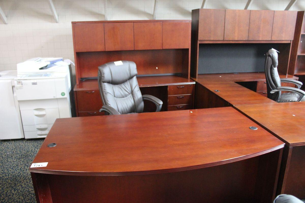 DARK CHERRY BOW FRONT EXECUTIVE OFFICE SUITE WITH DESK - CREDENZA AND HUTCH
