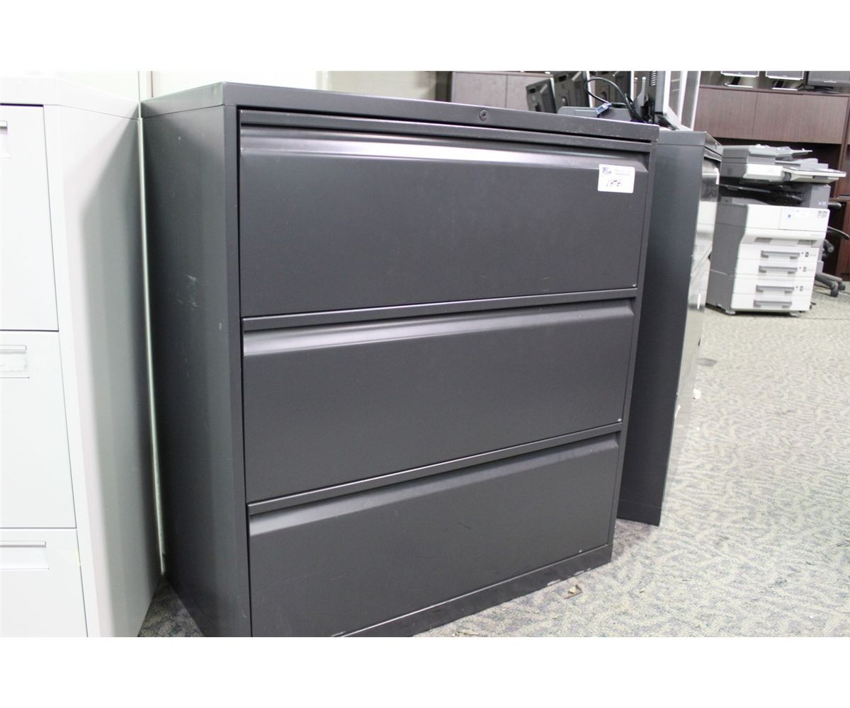 DARK GREY 3 DRAWER LATERAL FILE CABINET